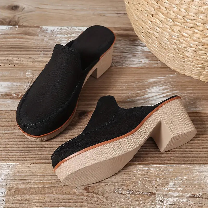 Women's Slip-On Loafers Two-Tone Block Heel Shoes Solid Color Comfortable