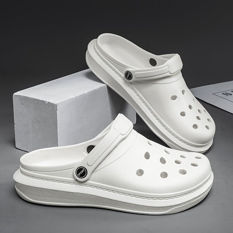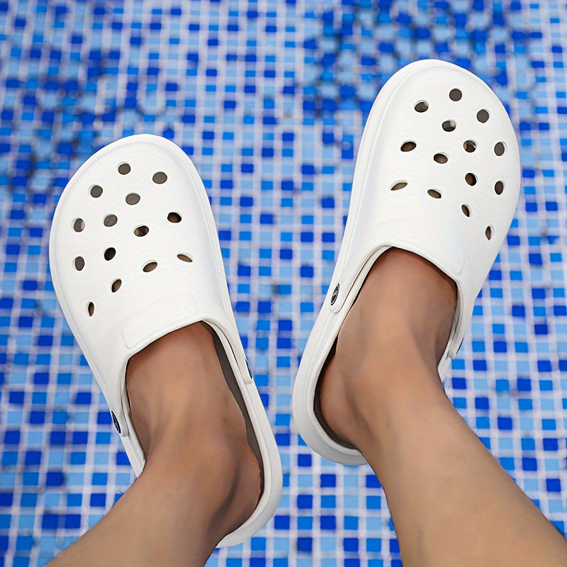 Women's Solid Color Clogs, Casual Hollow Out Garden Shoes, Slip-On Comfort