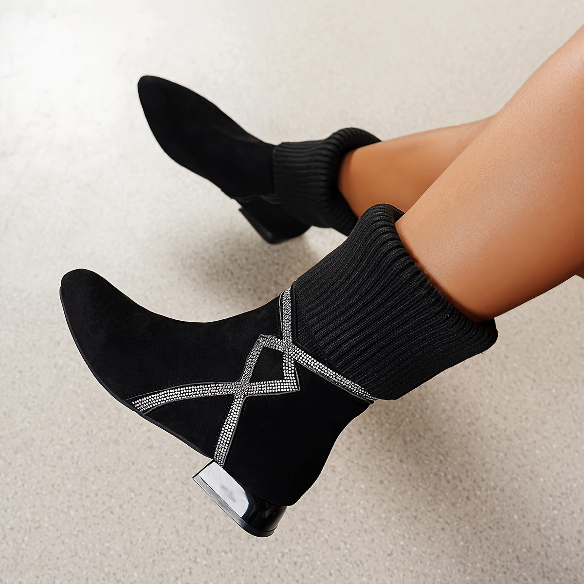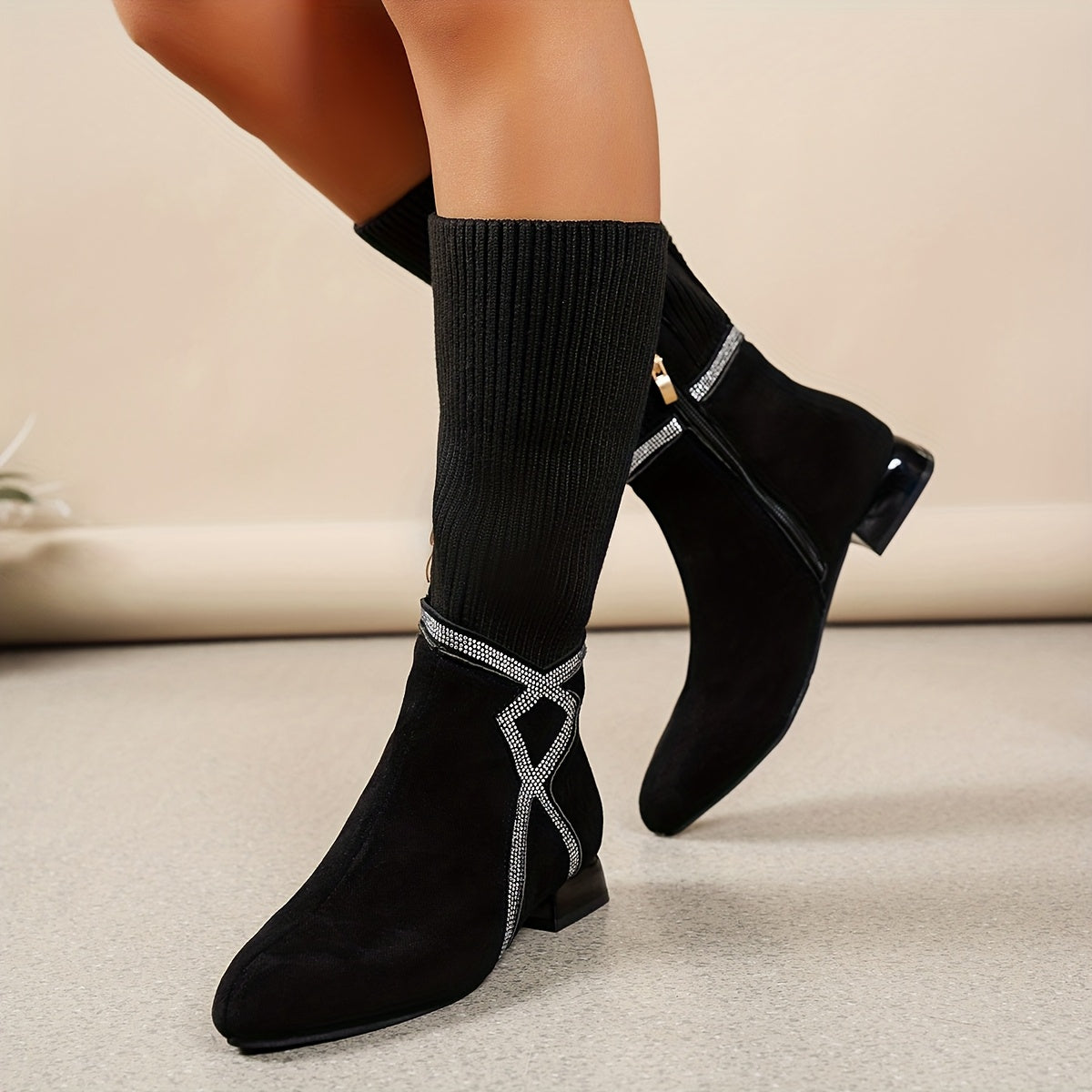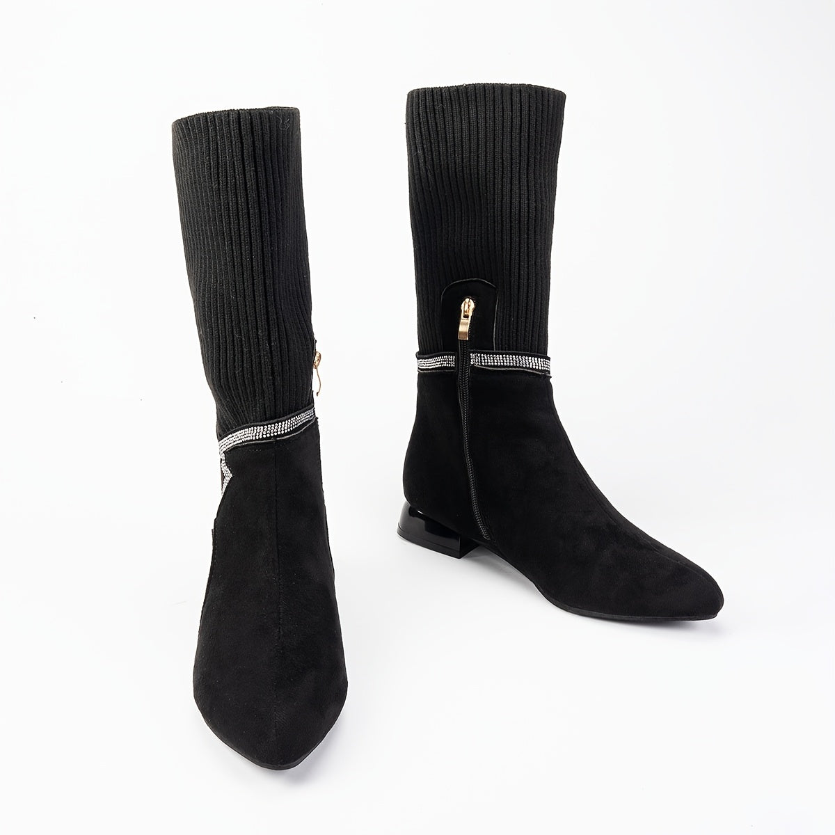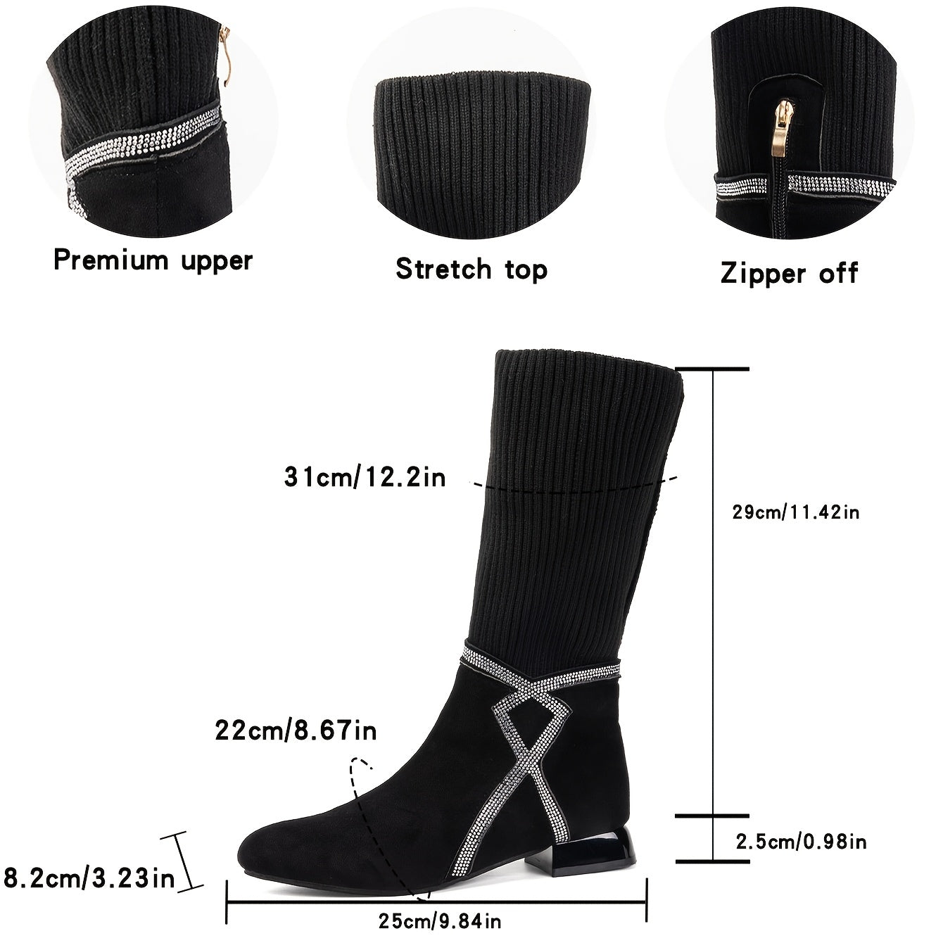 Женские короткие вязанные сапоги однотонного цвета с молнией и низким каблуком