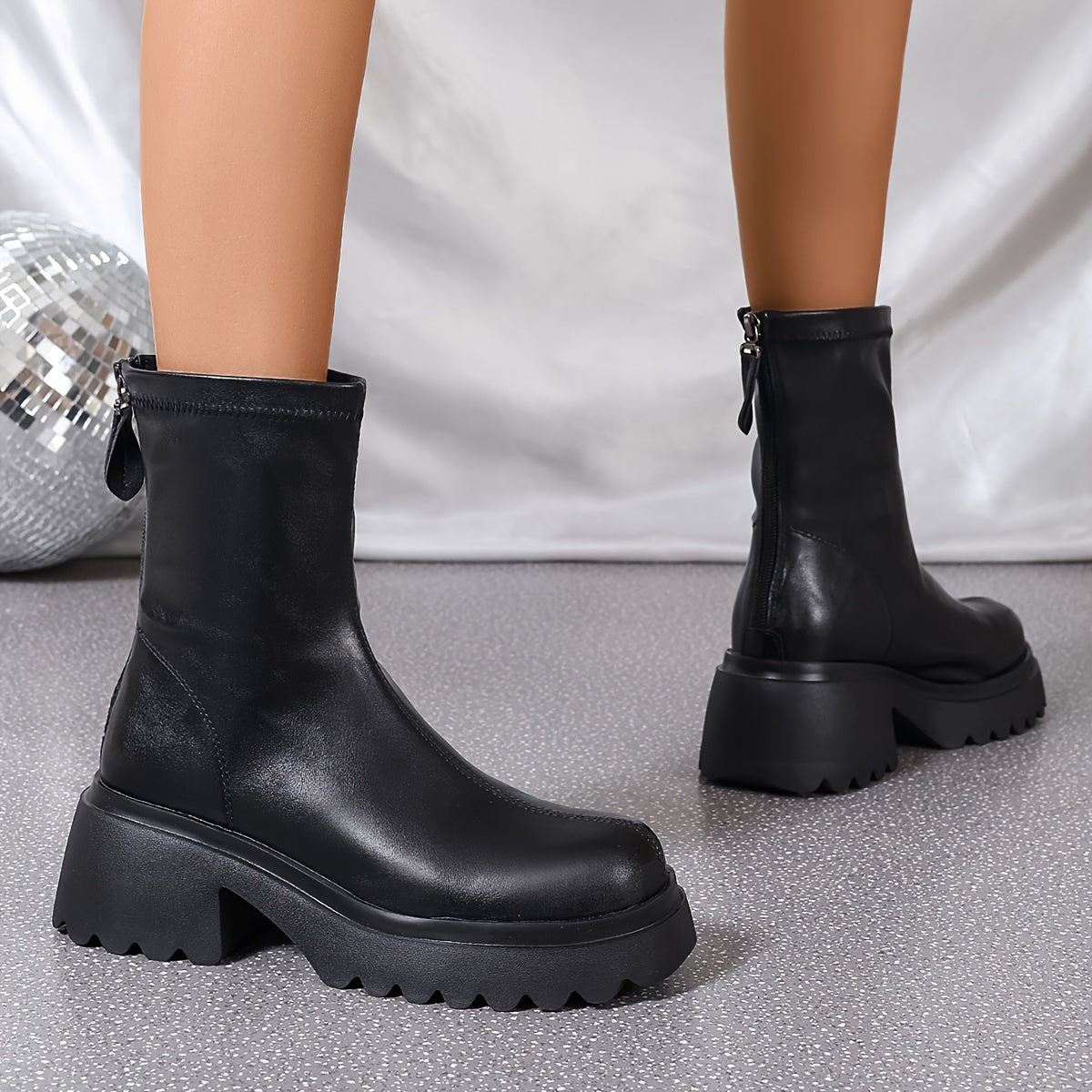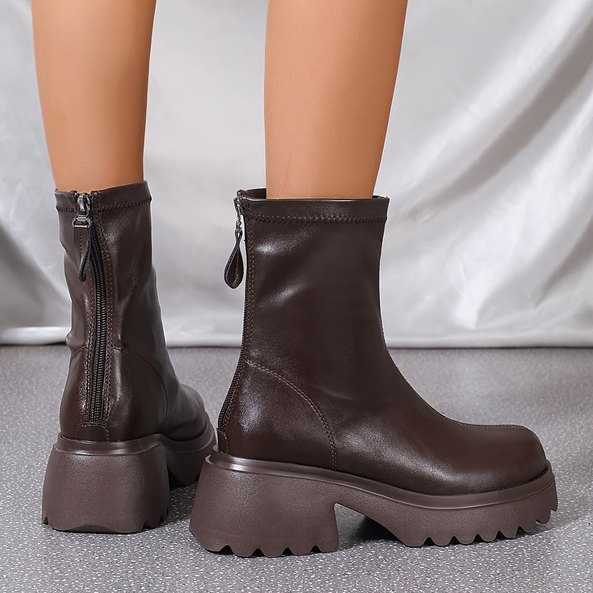Женские ботинки с платформой и средним голенищем, однотонные, на молнии, на клиновидном каблуке