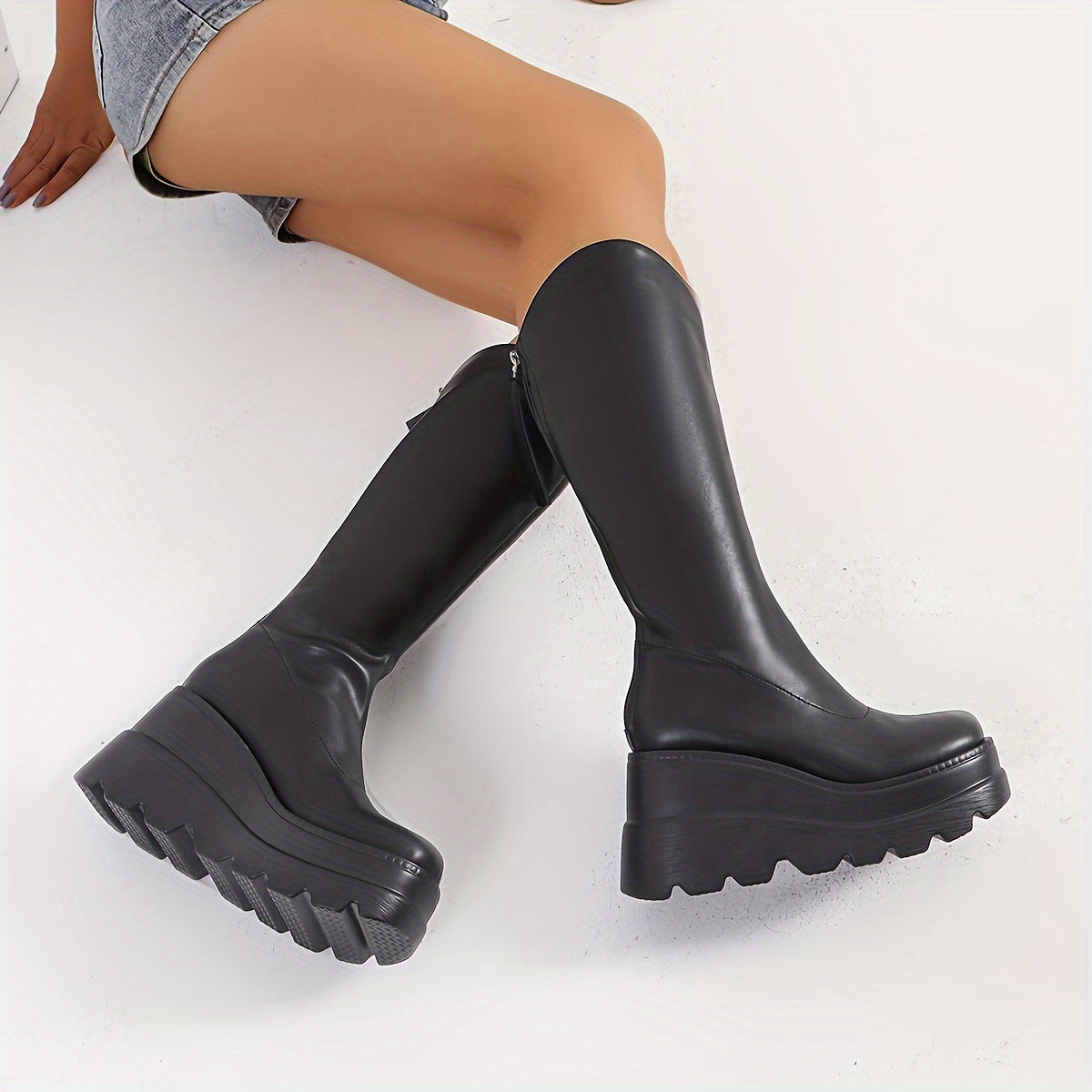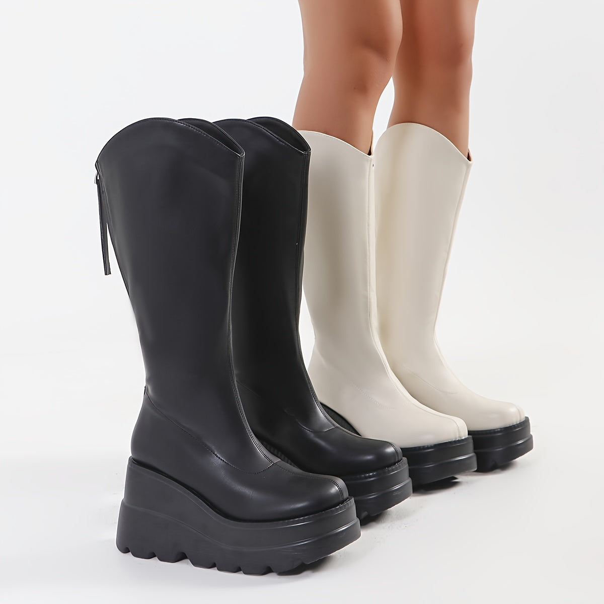Женские ботинки на платформе в однотонном цвете для боевых сапог, всесезонные, челси, круглым носком