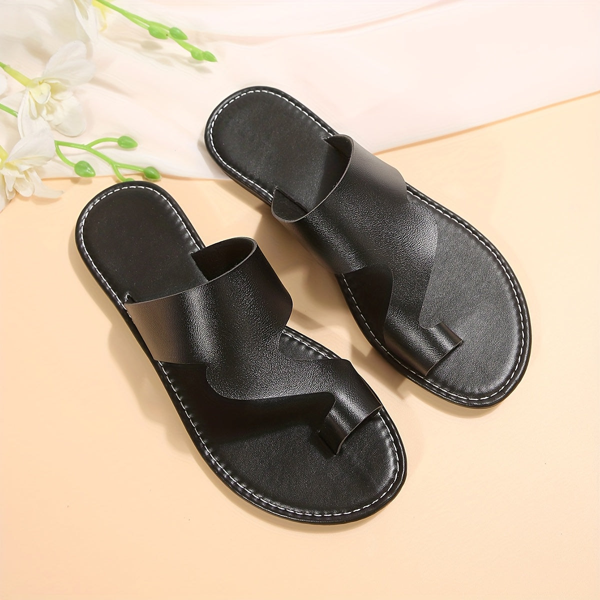 Женские однотонные летние плоские сандалии, удобные уличные шлепанцы