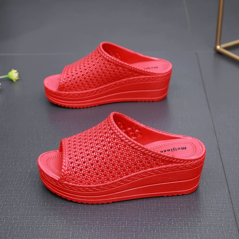 Женские сабо на танкетке с толстой подошвой для улицы, без застежки, для свадьбы и путешествий