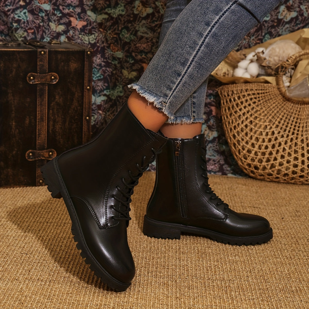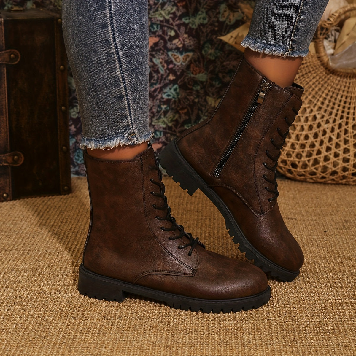 Женские ботинки в западном панк-стиле до середины икры, искусственная кожа, шнуровка, ковбойские туфли