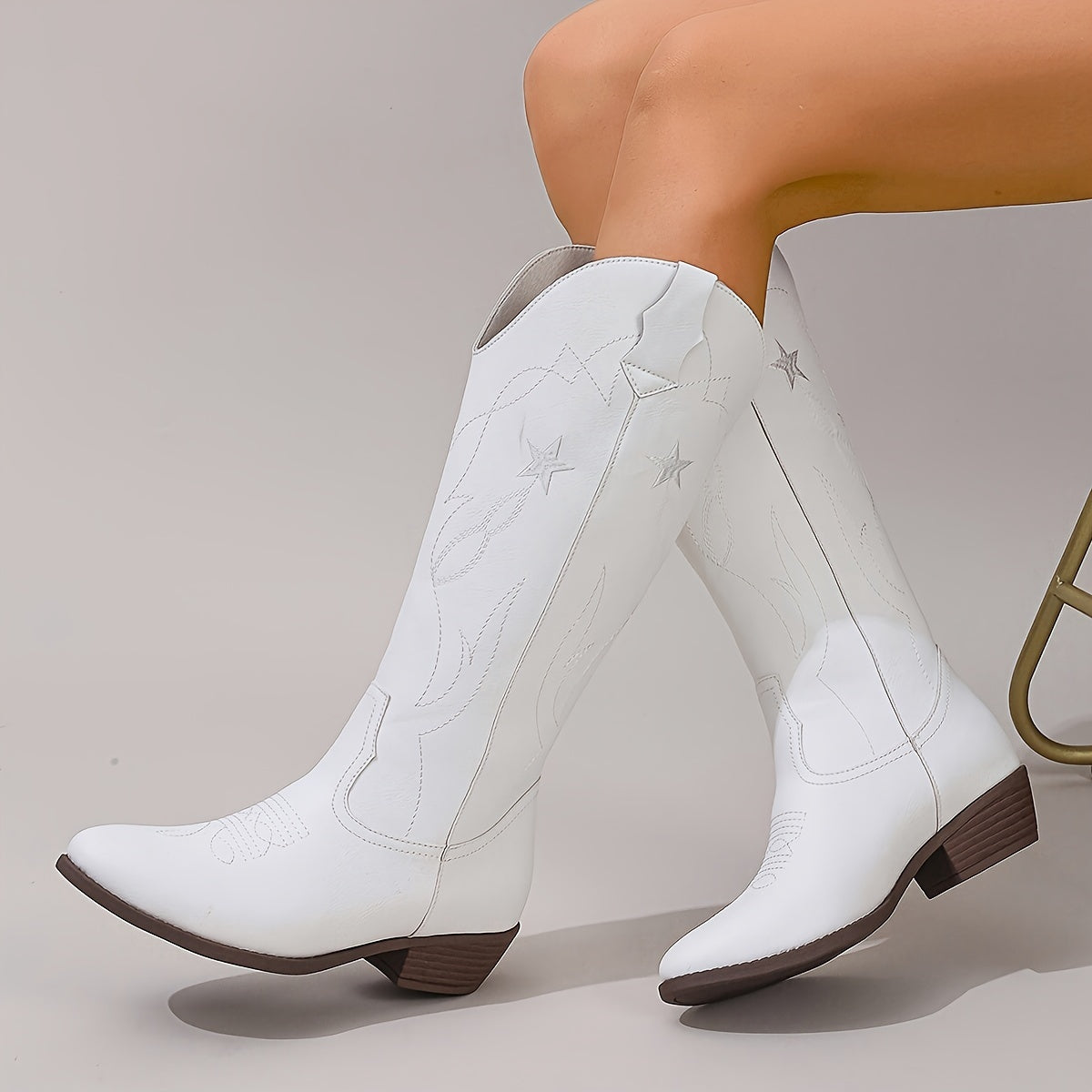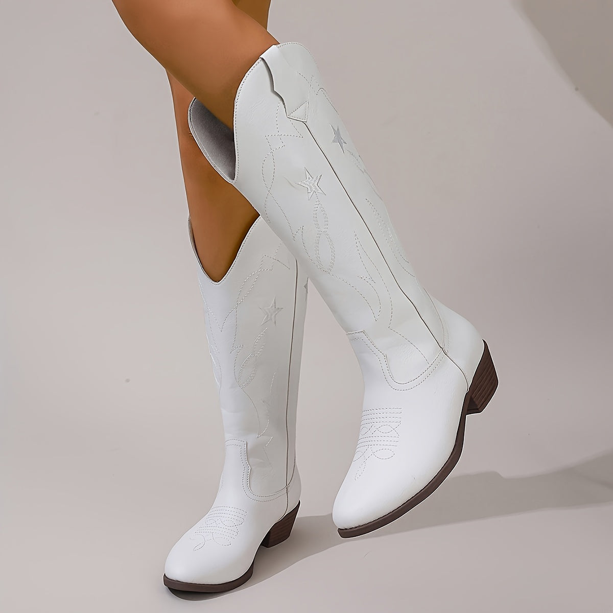 Женские западные ботинки-слипы с звездочным дизайном, средний клин, ковбойские туфли