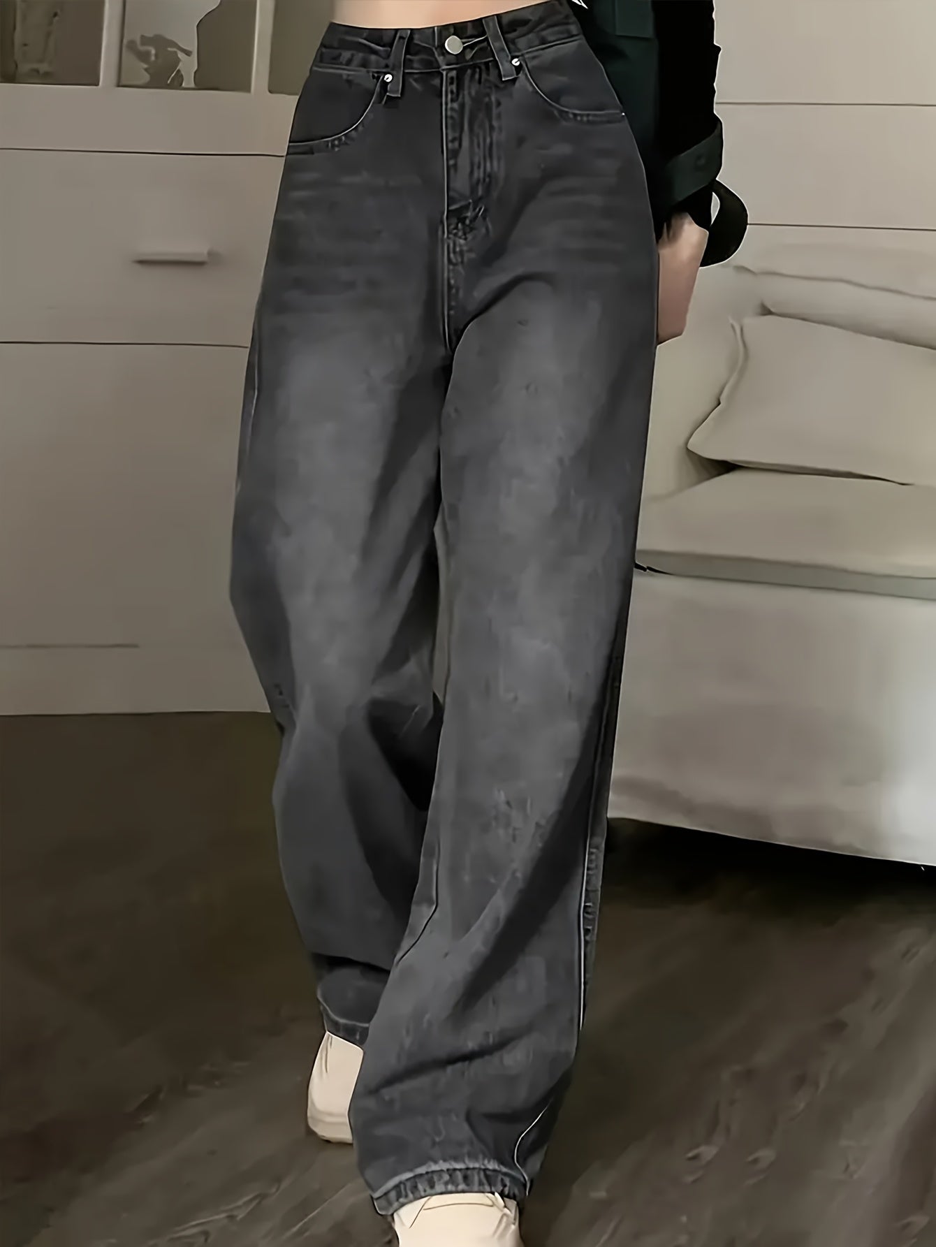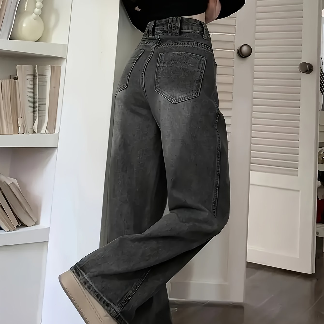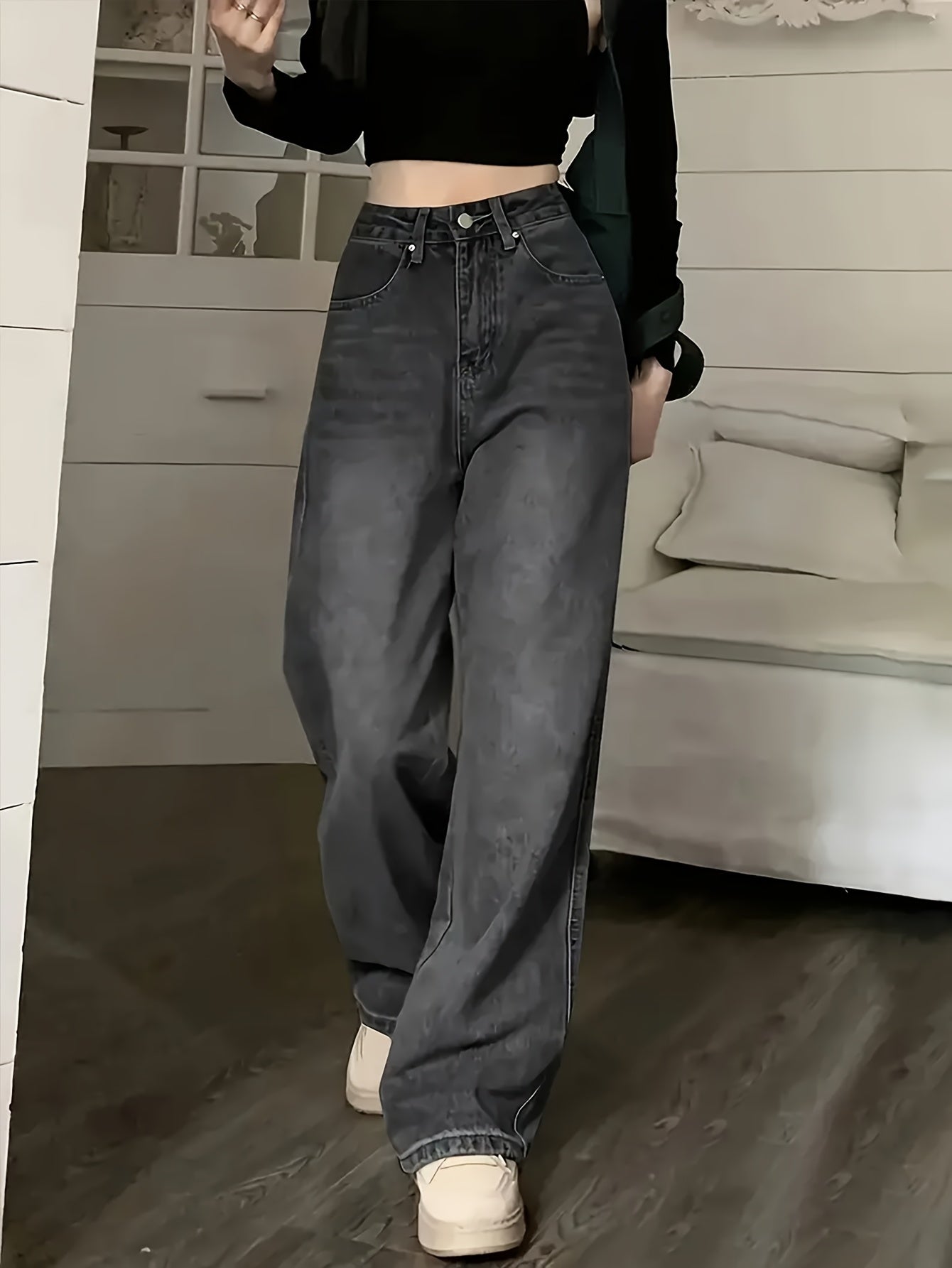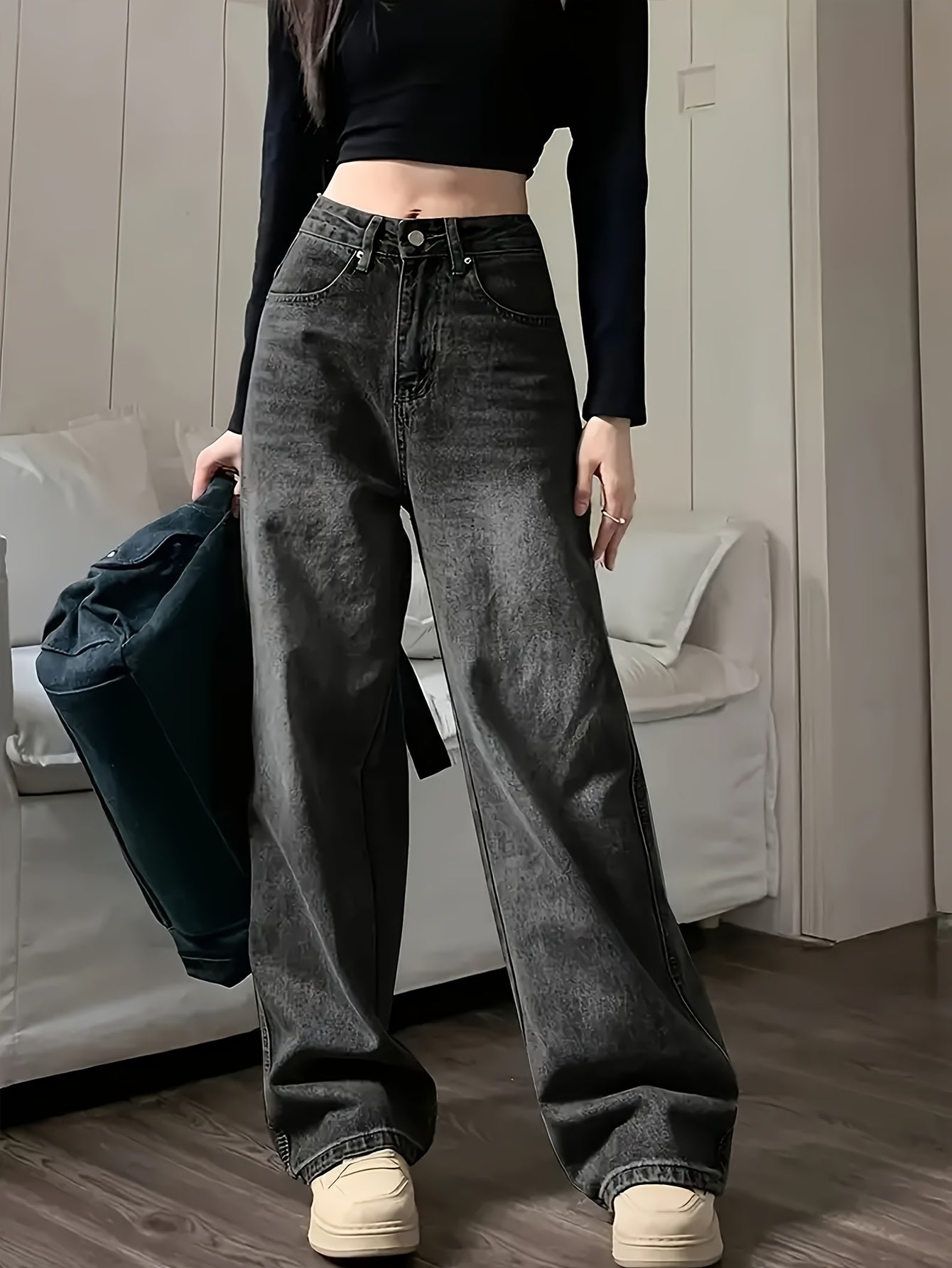 Женские джинсы с широкими штанинами черного и серого цвета в корейском дизайне