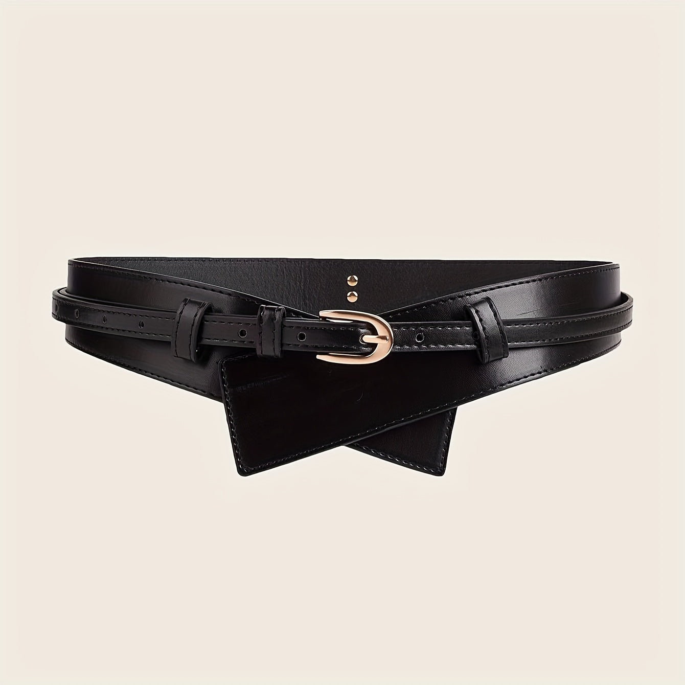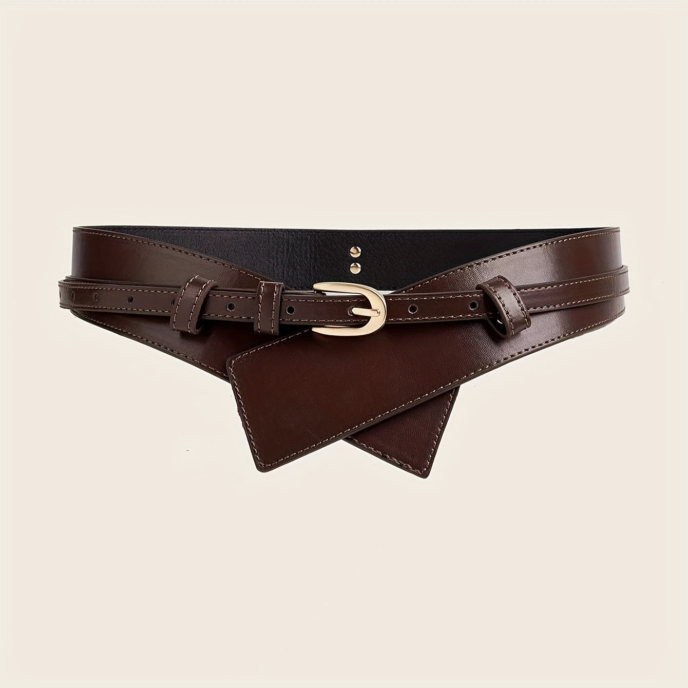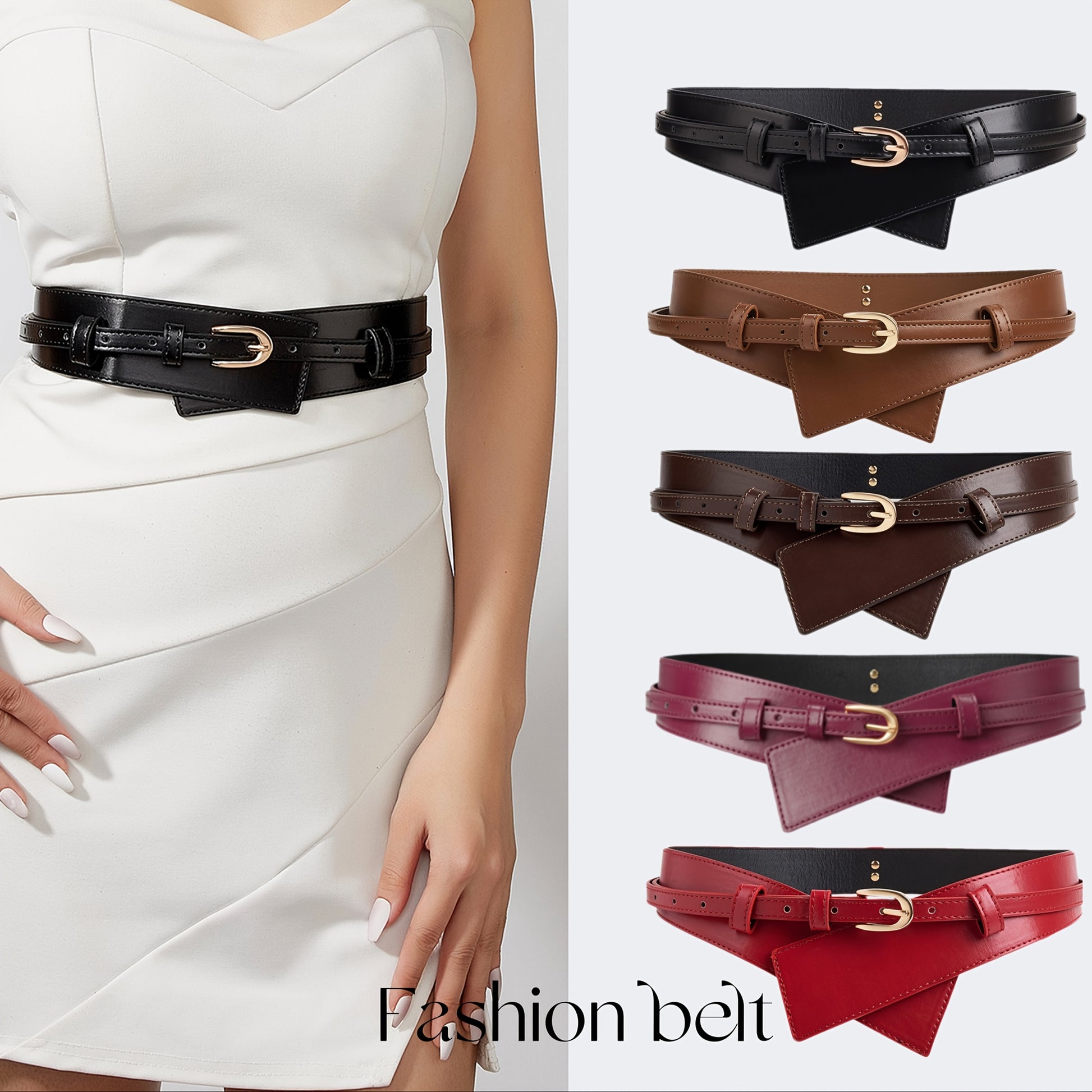 Женский широкий пояс с корсетным дизайном и золотой пряжкой.