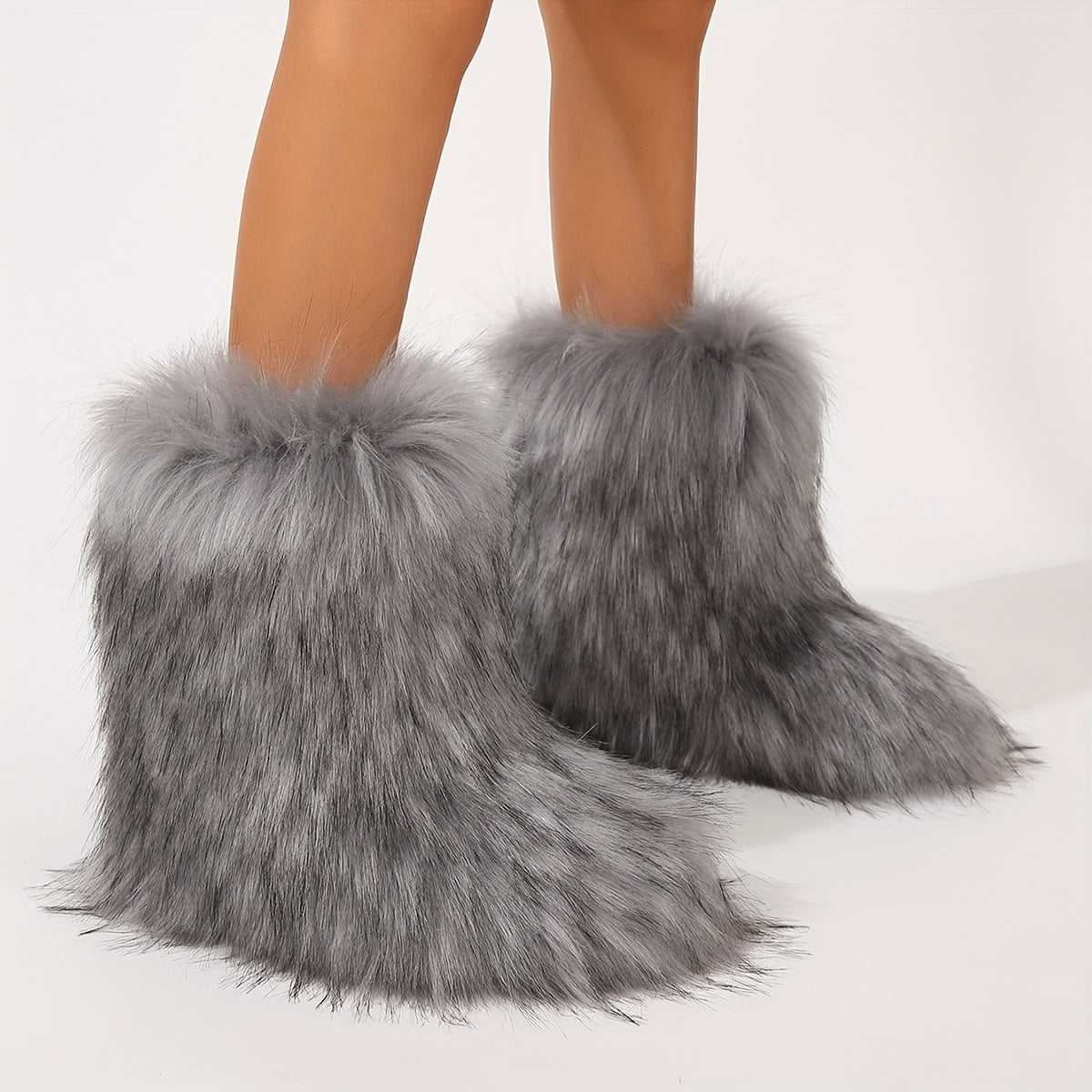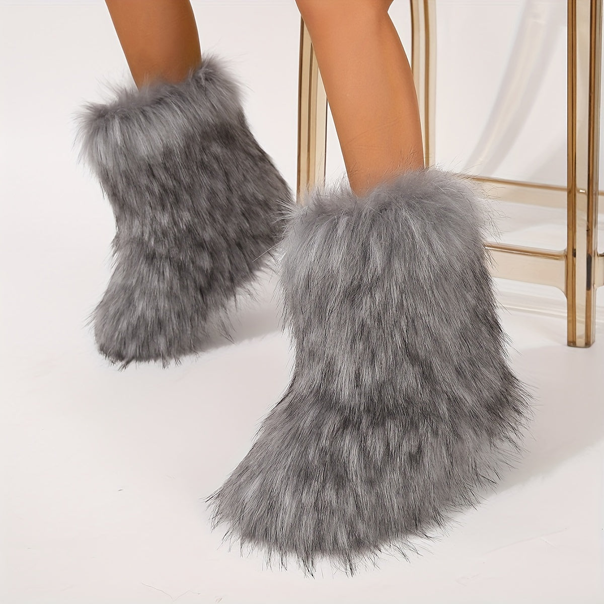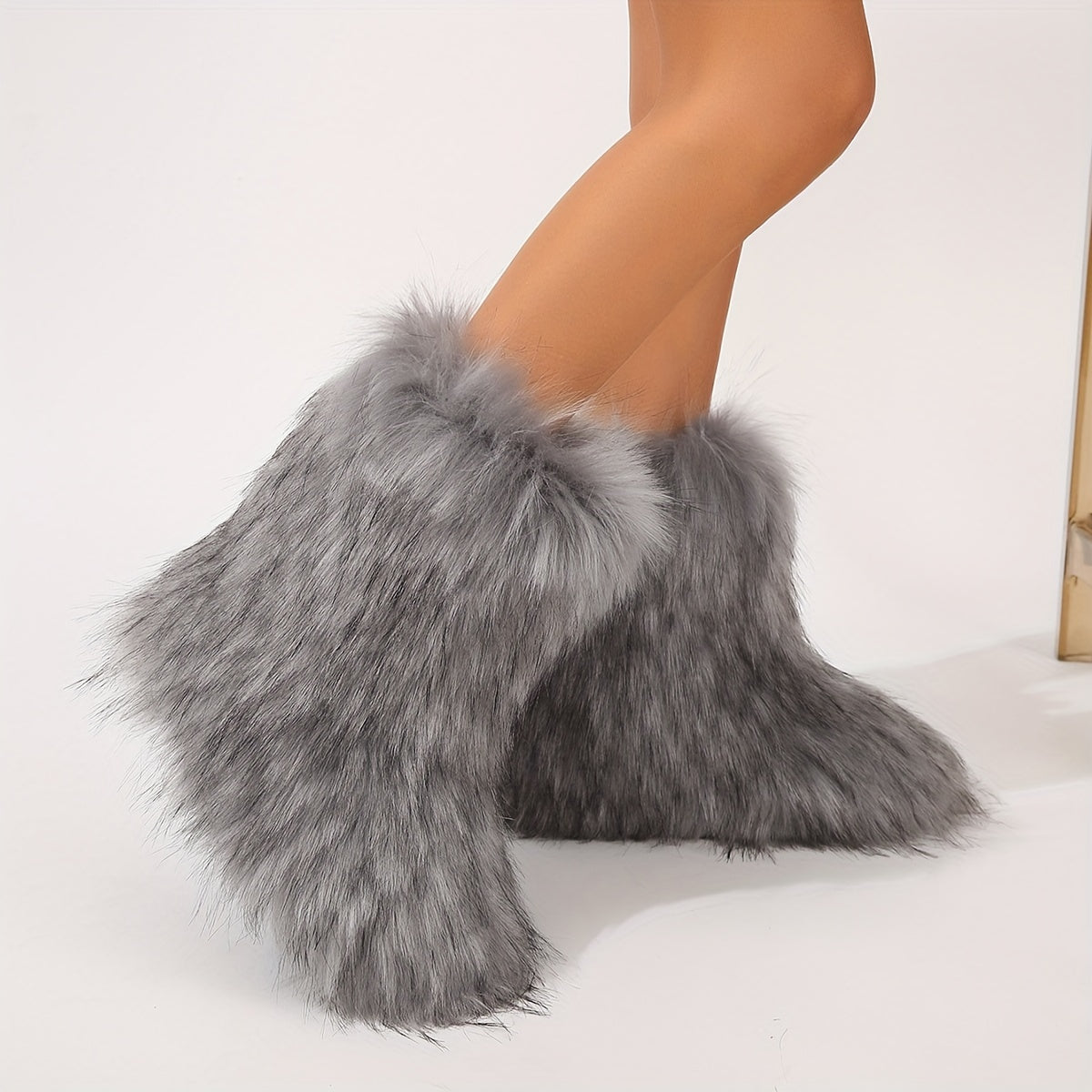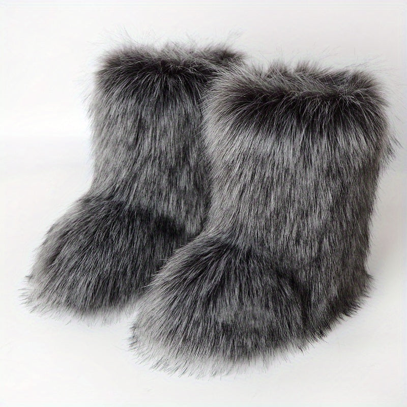 Женские зимние ботинки-слипы из искусственного меха до середины икры, с противоскользящей подошвой