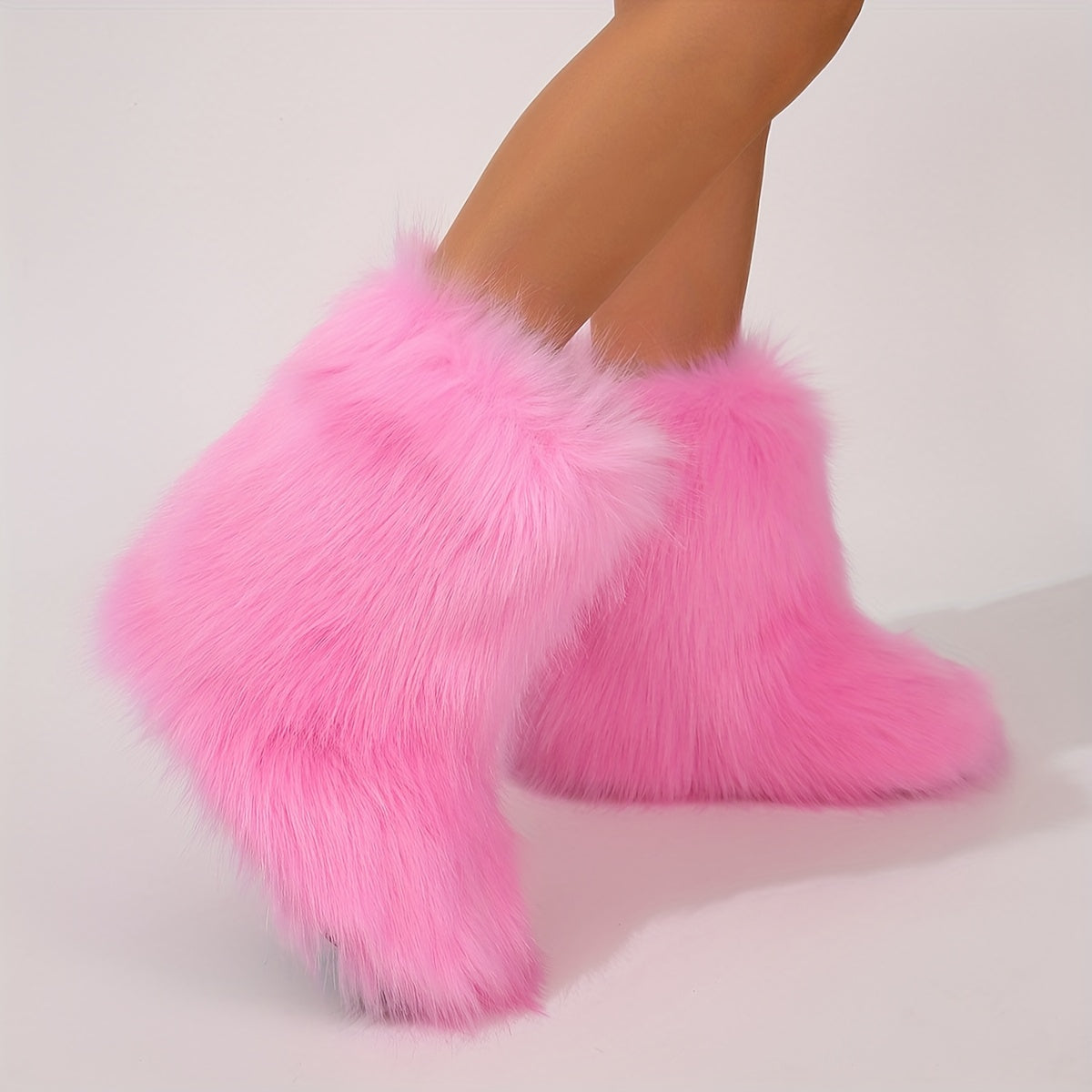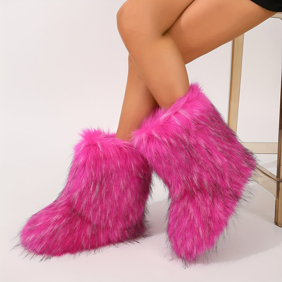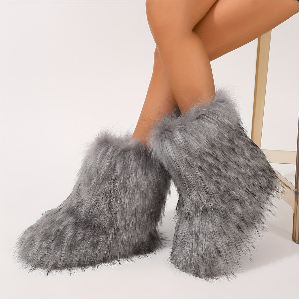 Женские зимние ботинки-слипы из искусственного меха до середины икры, с противоскользящей подошвой
