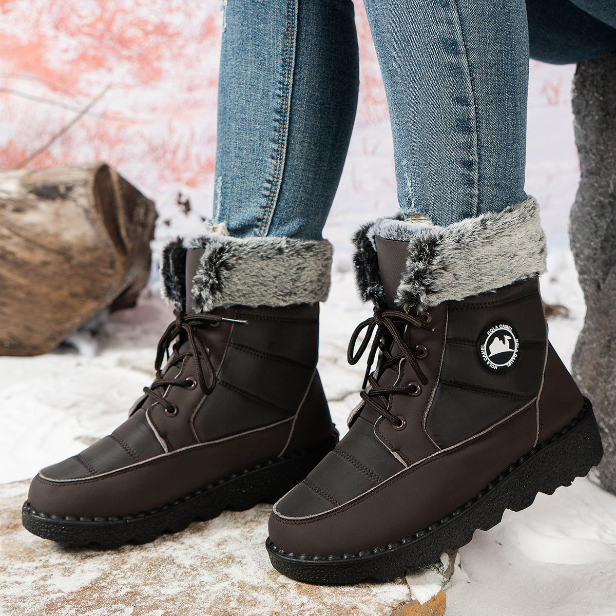 Женские зимние утеплённые ботинки на щиколотке с противоскользящей подошвой из PU, бордовый красный