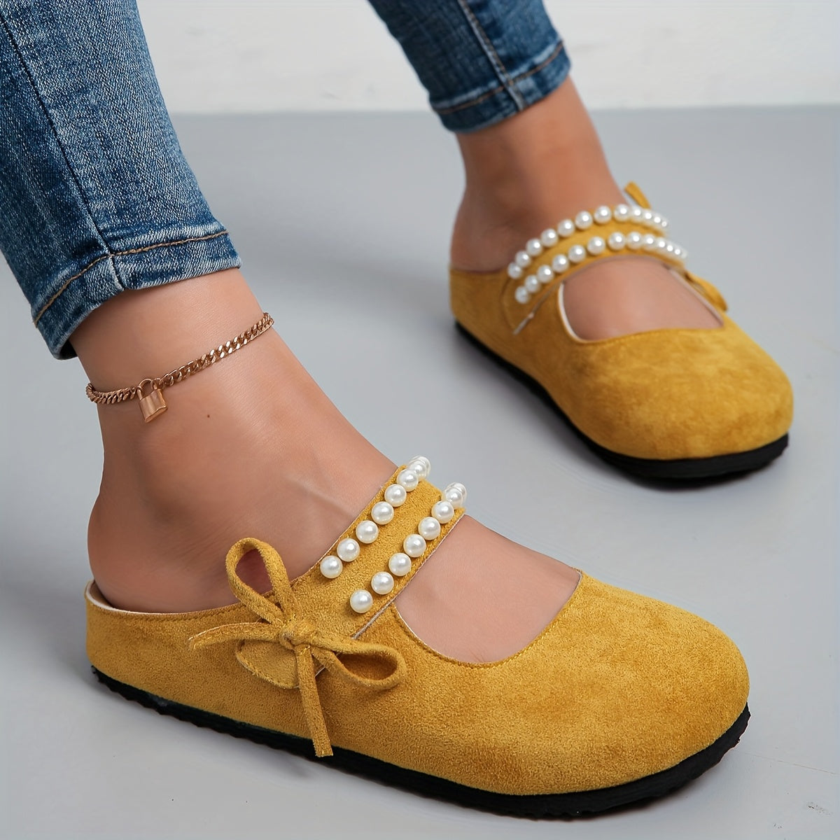 Women's Yellow Fabric Slip-On Mary Jane Sandals with Cushioned Sole