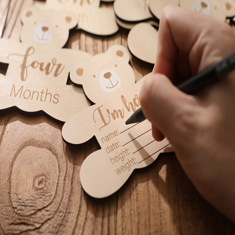 Деревянные буквы для дня рождения, карточки для этапов роста, милые акценты с медвежонком, деревянные карточки для этапов, очаровательные фотопропсы, празднование первого дня рождения малыша.