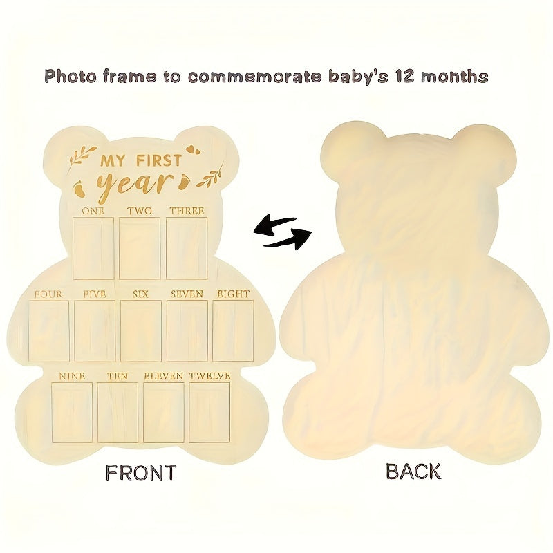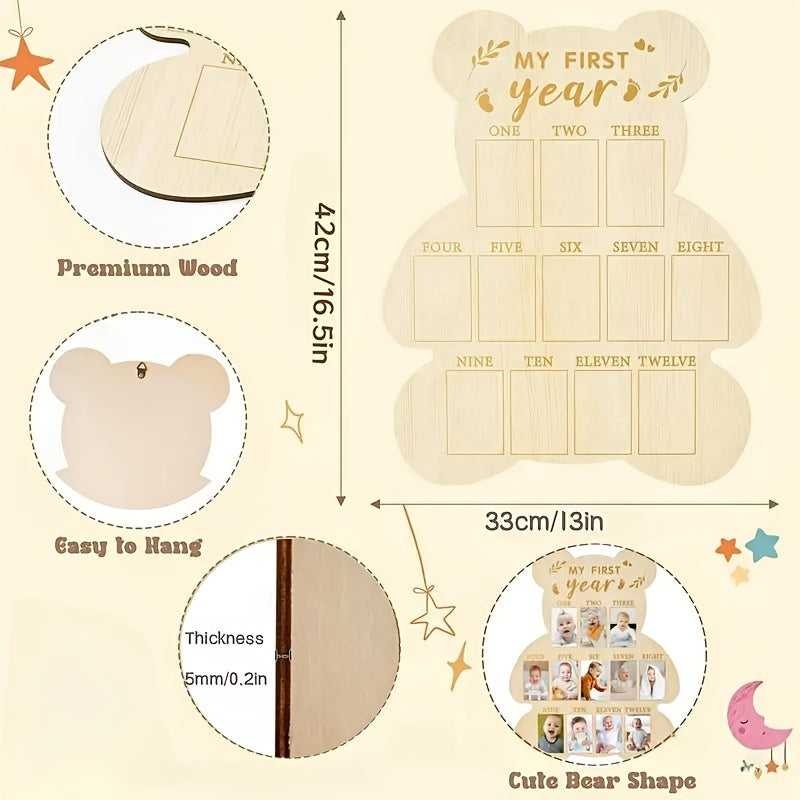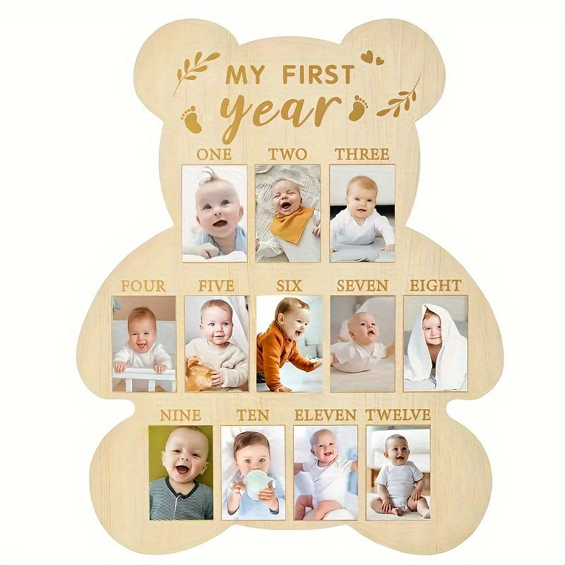 Деревянная фоторамка для первого года с полированной отделкой - вертикальная рамка для постеров в форме медведя для декора детской и календаря в гостиной - милый подарок на первое день рождения для детей от 14 лет - праздник прибытия - 1 шт.