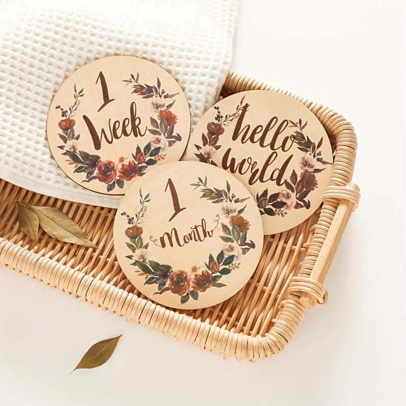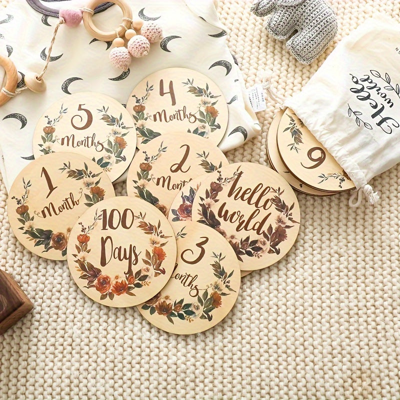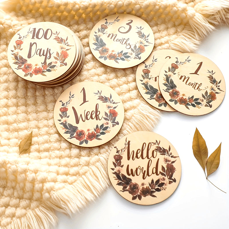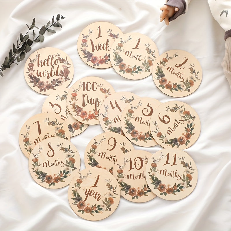 Деревянные цветочные карточки для фотографий о росте детей - Коллекция памятных карточек для первого года жизни малыша в различных цветах