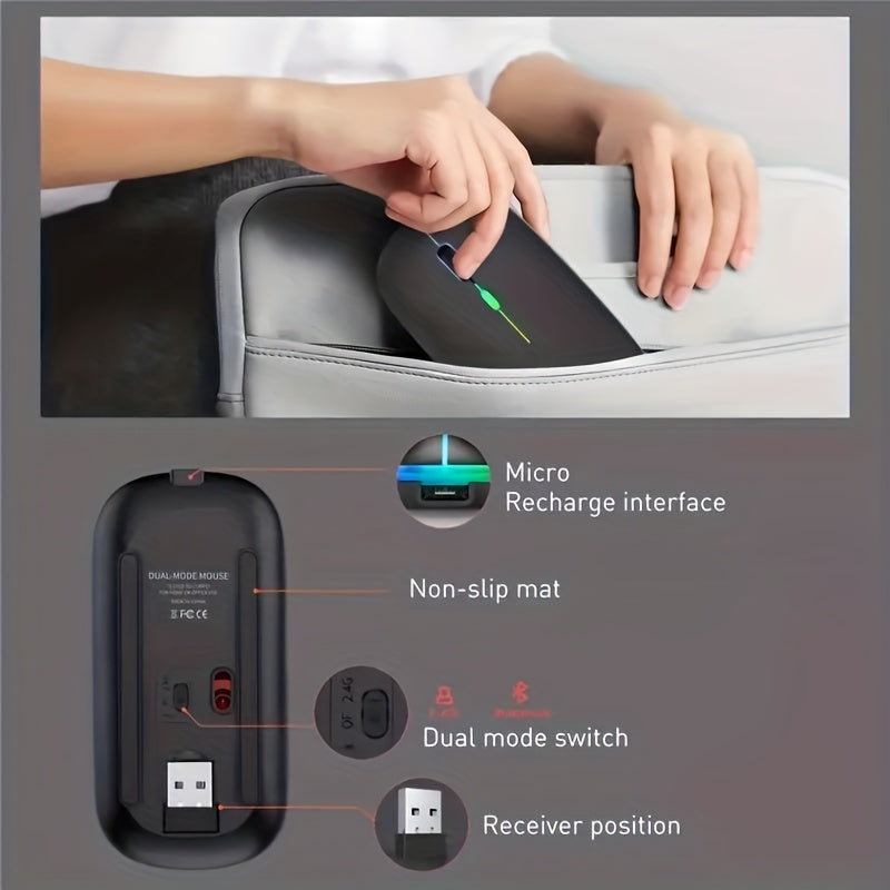 WOWSSYO Беспроводная игровая мышь с трекболом, эргономичный дизайн для правшей, тихая подсветка, USB перезаряжаемая, двойной режим 2.4G и 5.1, для ноутбука и iPad, работающая от батареи с блестками