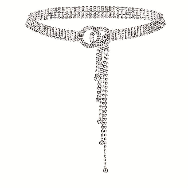 Ayollar uchun Rhinestone belbog'i, ikki O-ring bilan, zamonaviy kiyingan kiyingan kiyingan belbog'li taqinchli taqinchoq
