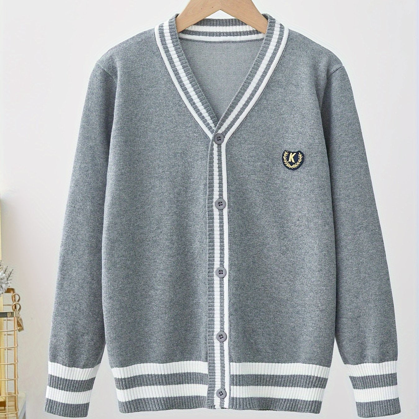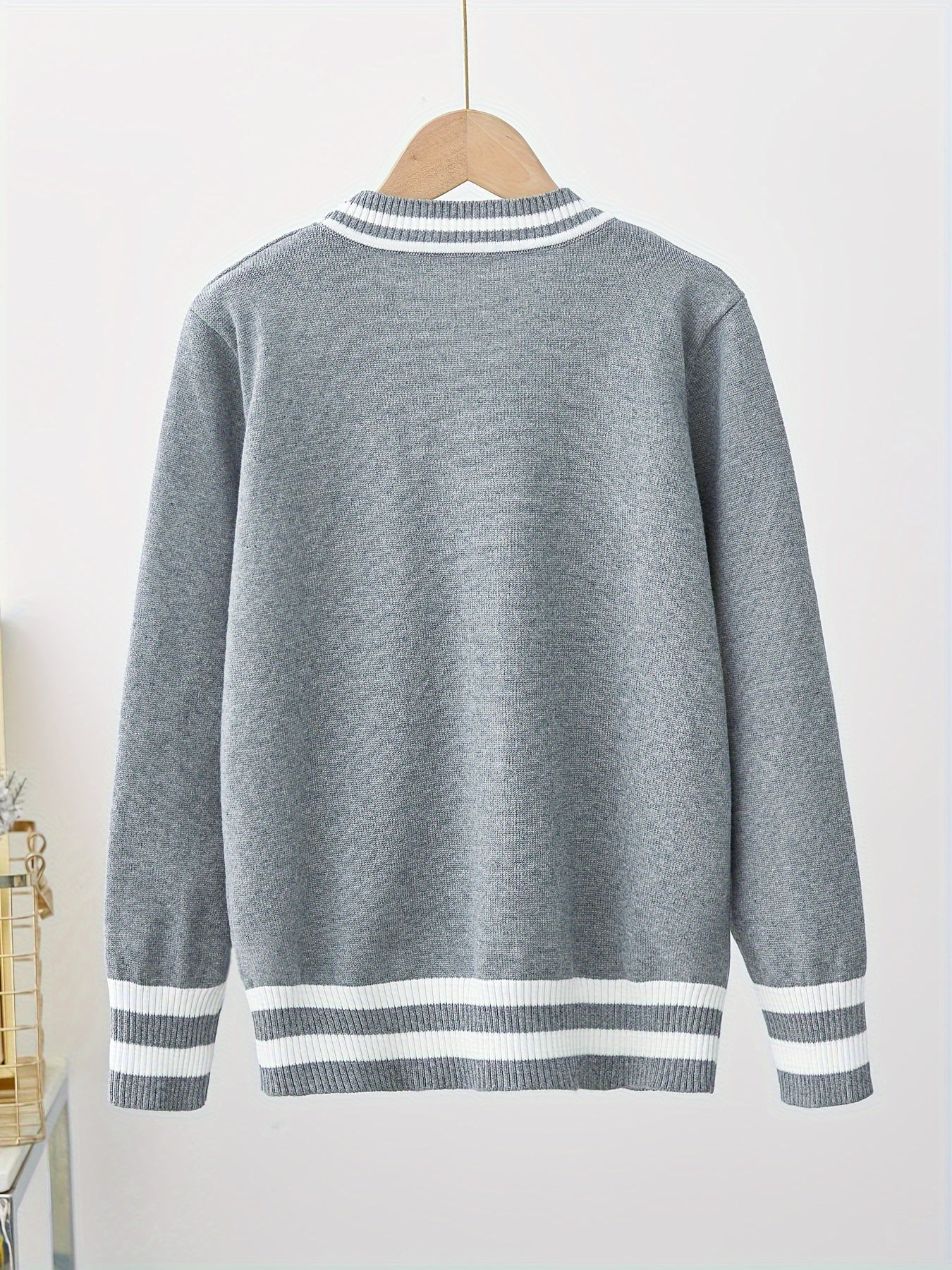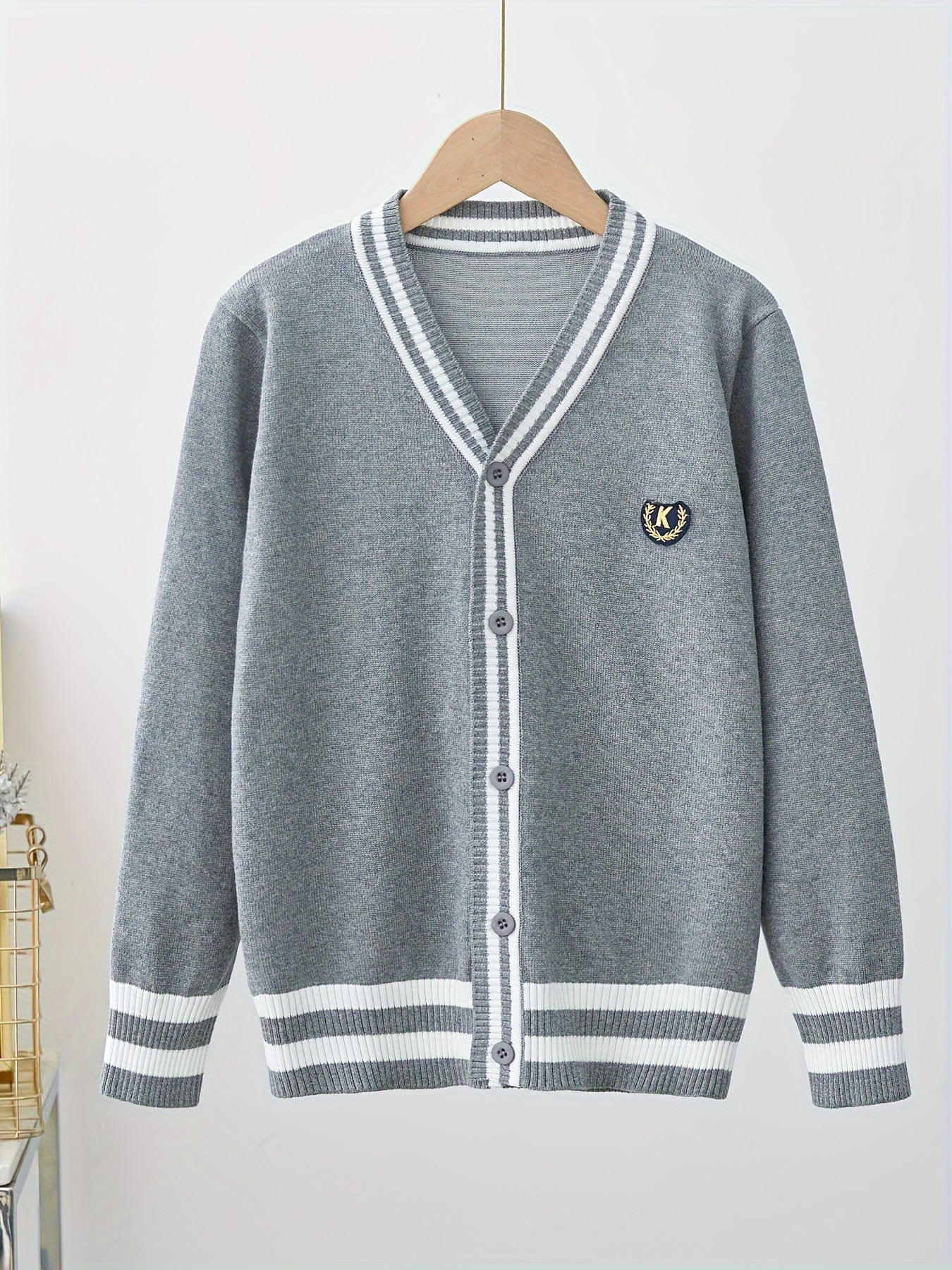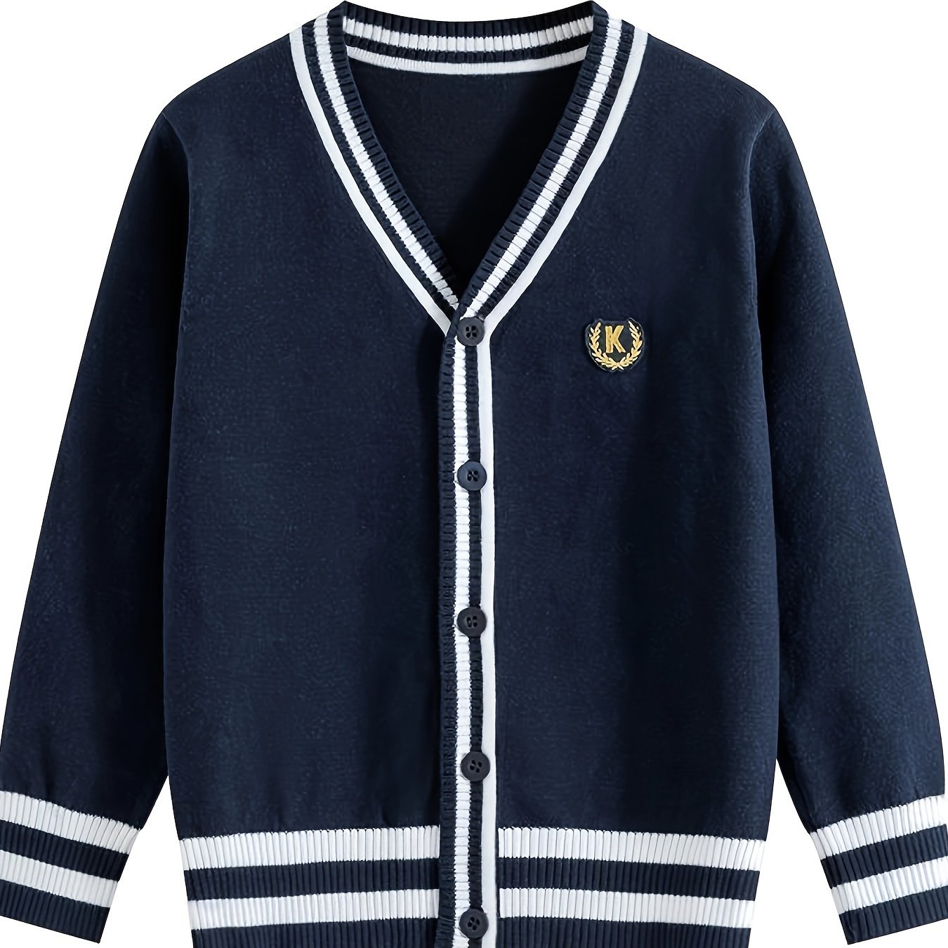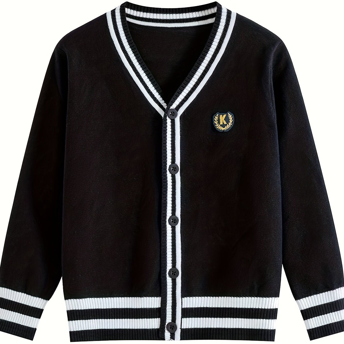 Детский вязаный кардиган с черно-белой полоской из хлопка с V-образным вырезом для мальчиков и девочек весна-осень