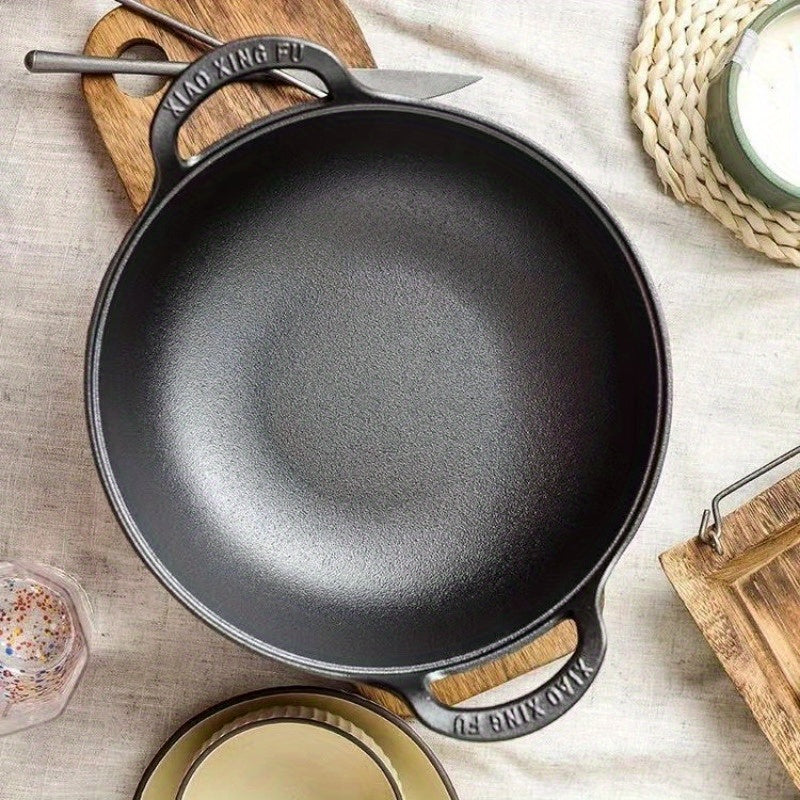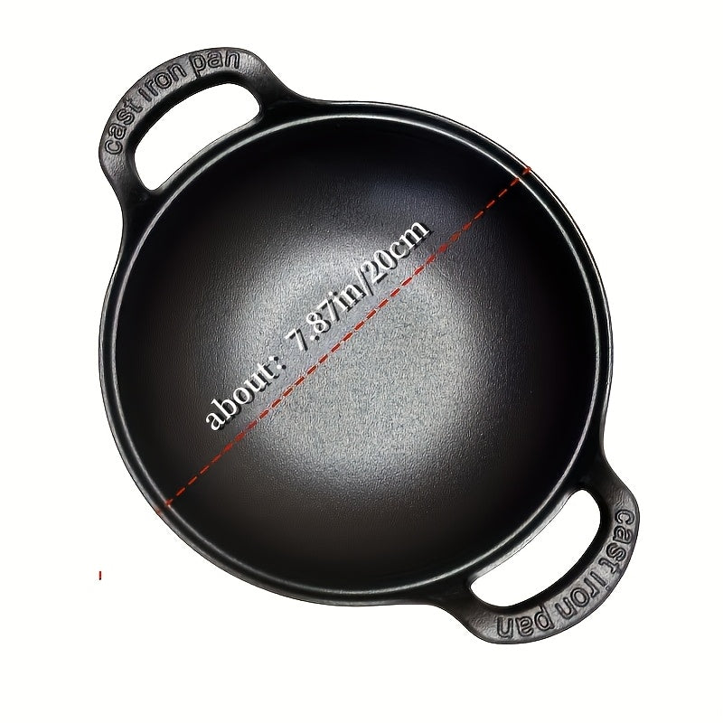 "Юаньбао Чугунная кастрюля: традиционная неокрашенная чугунная суповая кастрюля с двумя ручками, прочная домашняя сковорода-фритюрница и маленькая кастрюля для готовки"
