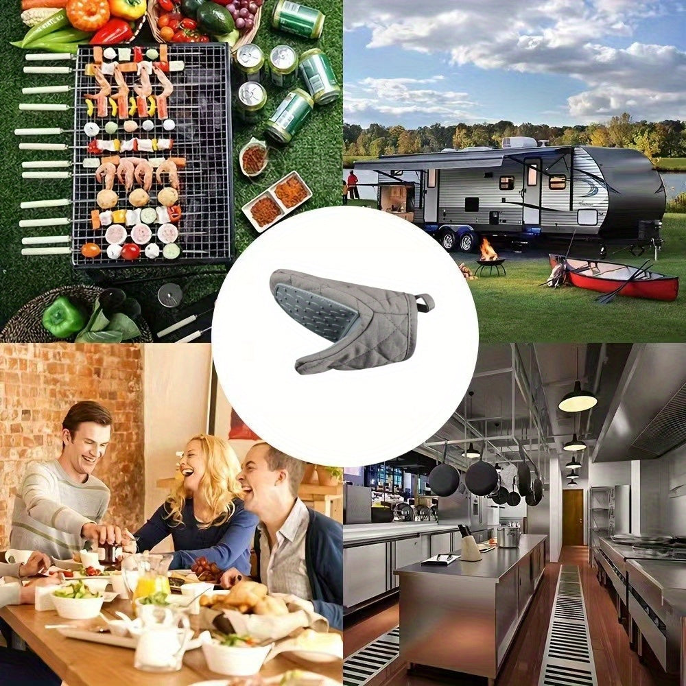 Bej qoplangan silikon pech qoʻli, pushti aksentlar bilan, issiqlikka chidamli oshxona qoʻli