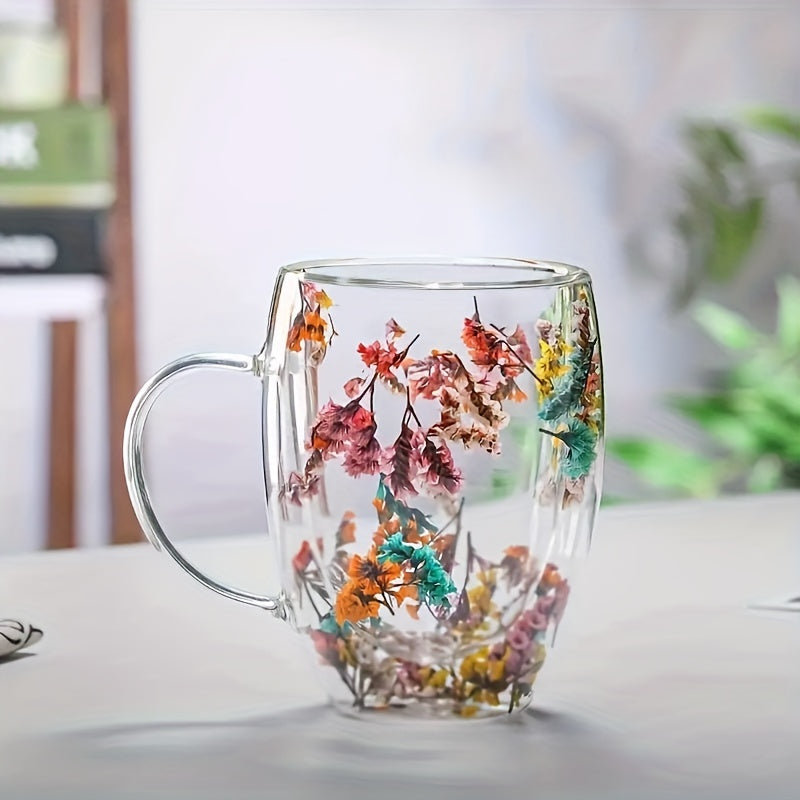 1 Ta'sirli Gullar bilan Shisha Qahva Kofe, 11.83oz Ikki Qavatli Chashka, Qahva Sevuvchilar Uchun Mukammal Sovg'a