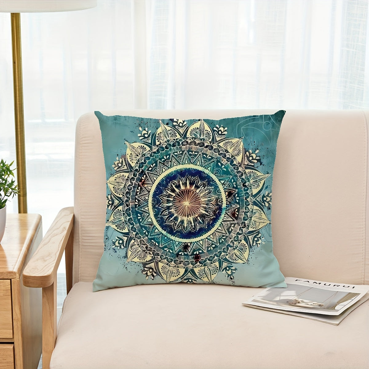 1 Mandara Yostiq Qopqog'i, 42.93sm*42.93sm, Bir Tomonlama Bosma, Divan, Ota-onalar Xonasi, Uy Dekoratsiyasi uchun Mukammal, Yostiq Yadrosi Kiritilmagan.