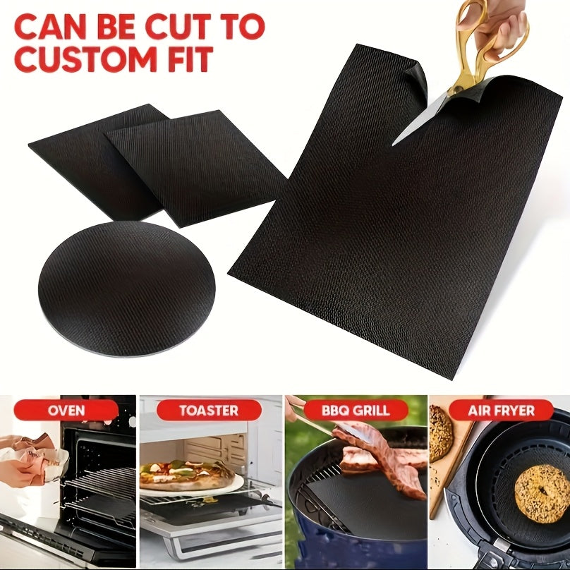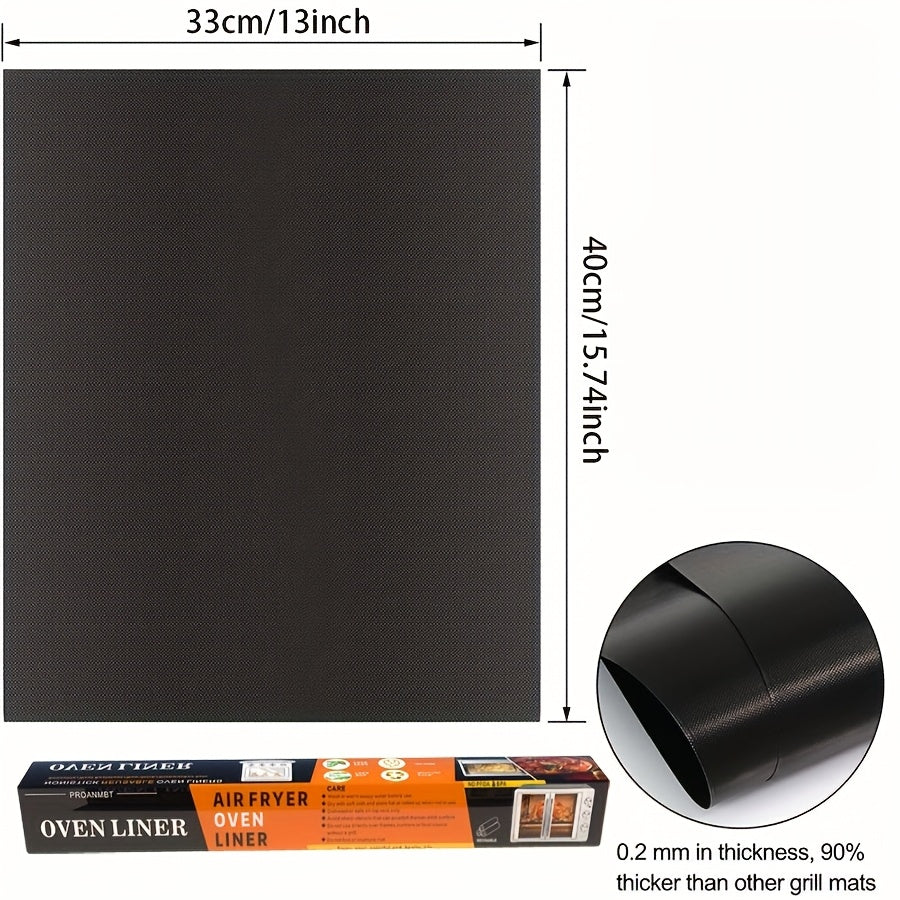 1 dona qora PVC dan tayyorlangan yopishmaydigan qayta ishlatiladigan pech matosi, elektr va gaz pechlarida, shuningdek, BBQ da foydalanish uchun mos. Partiyalar va ta'tillar uchun ajralmas aksessuar.