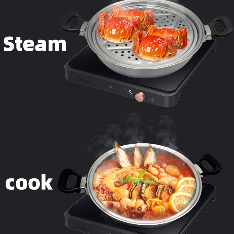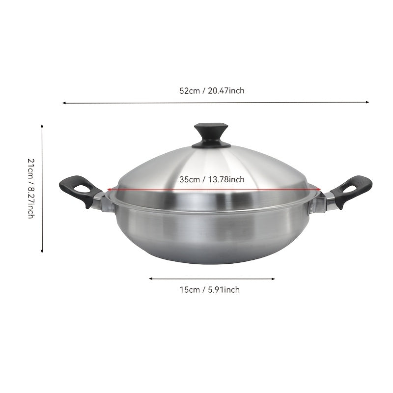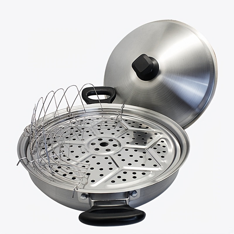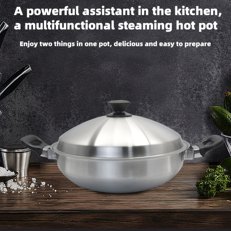 1 dona zanglamas po'latdan yasalgan bug'li idish, 35.0 sm ko'p funksiyali issiq idish, bug'lash va qovurish xususiyatlari bilan, uy va restoran uchun mukammal.