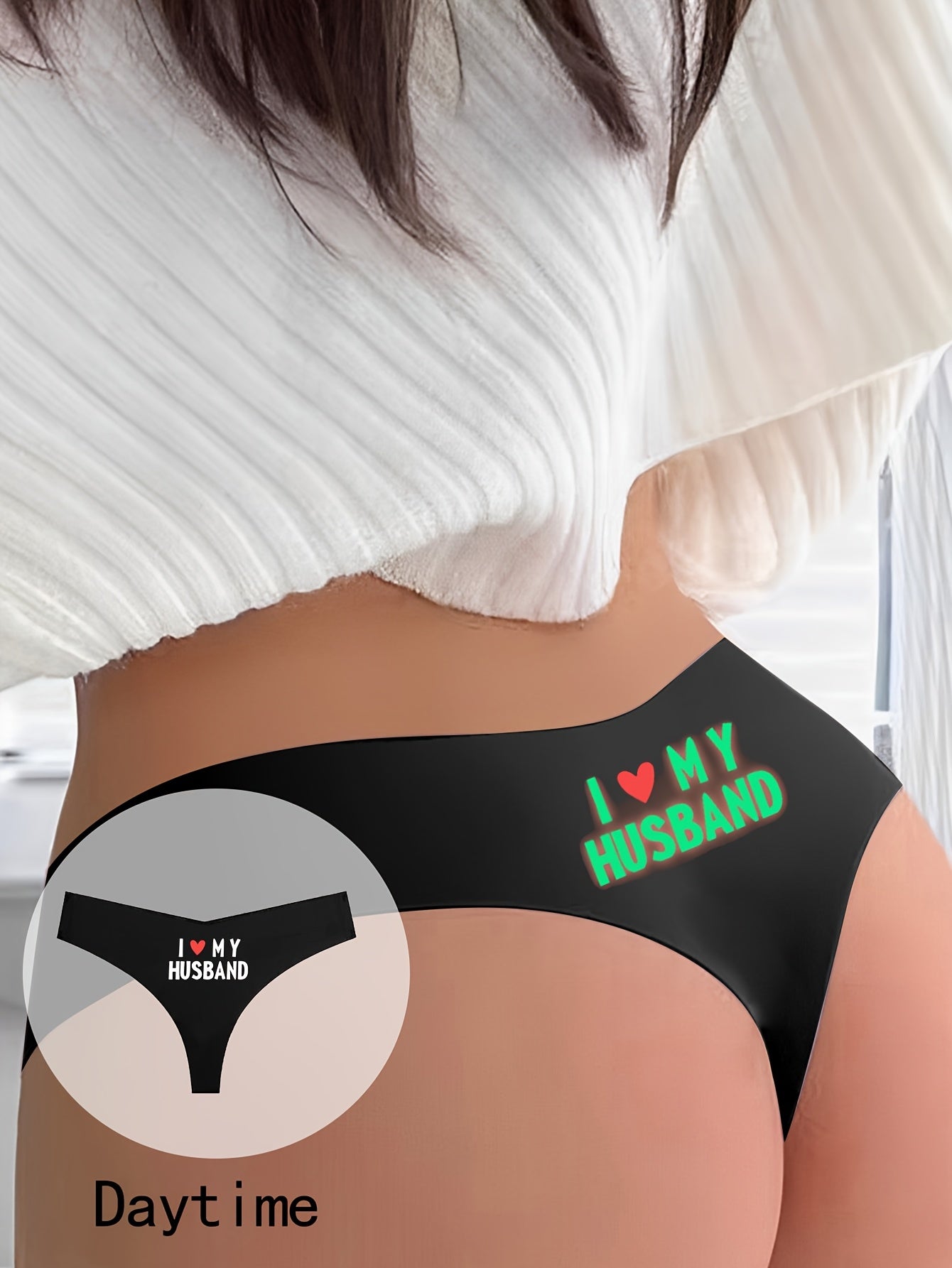 1 dona ayollar uchun qorong'ida porlaydigan thong ichki kiyim, qulay polyamid to'qima matodan tayyorlangan.