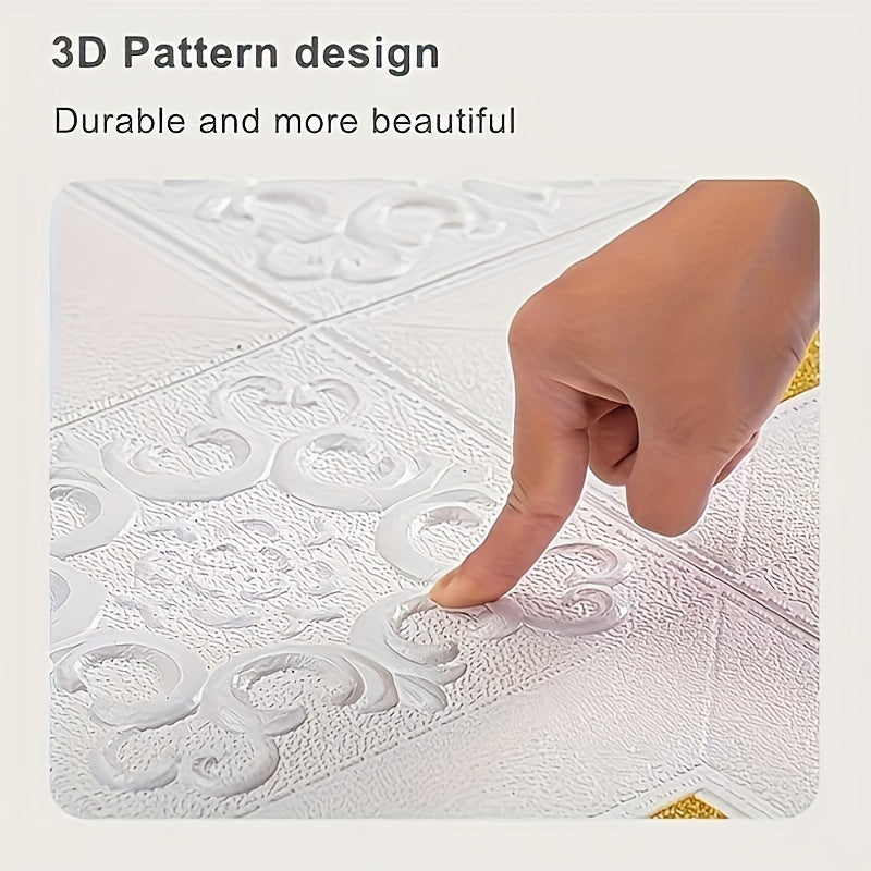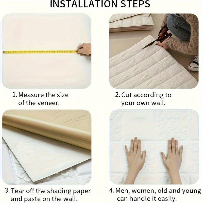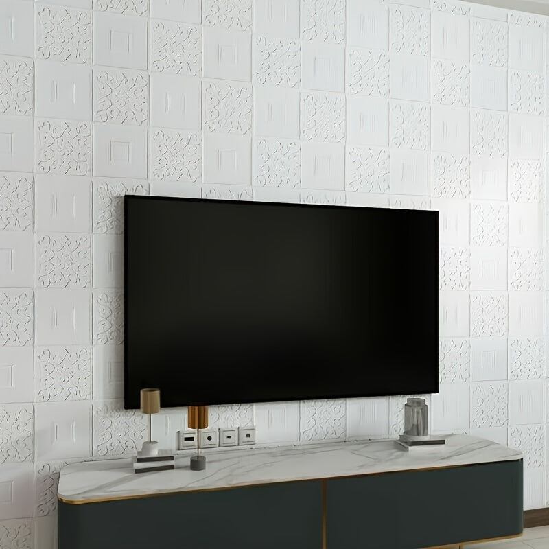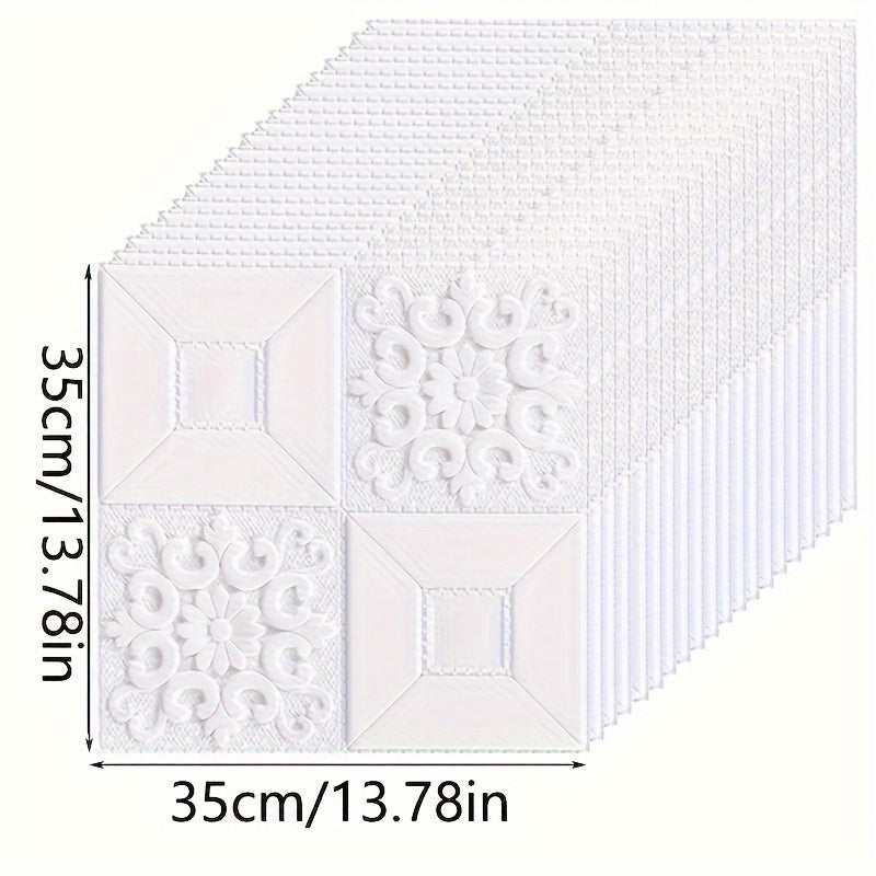 10/40 dona oq 3D gul o'z-o'zini yopishtiradigan PVC devor panellari, suv o'tkazmaydigan, yuviladigan, ta'sirga chidamli, uy bezak uchun