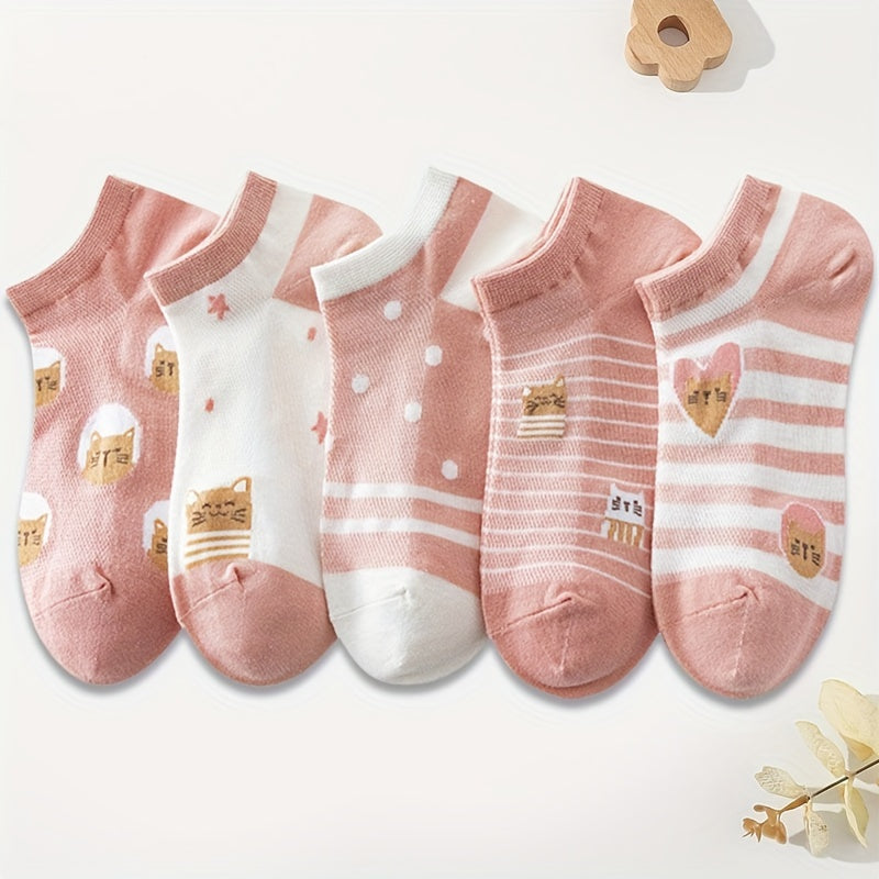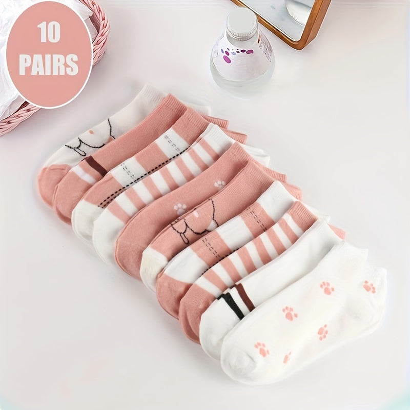 Ayollar uchun 10 juft qiziqarli, qulay va nafas oladigan mushuk naqshli sport paypoqlari.