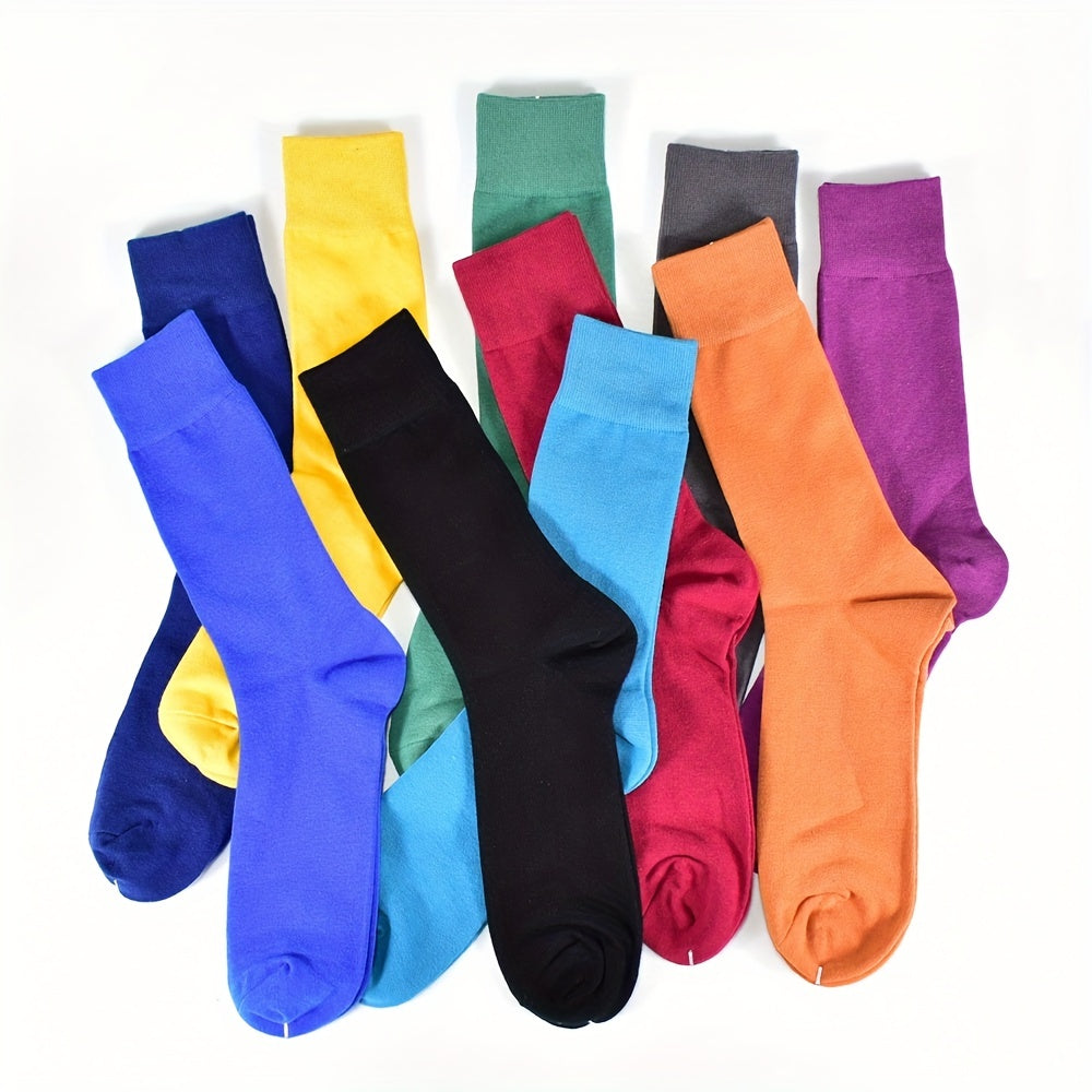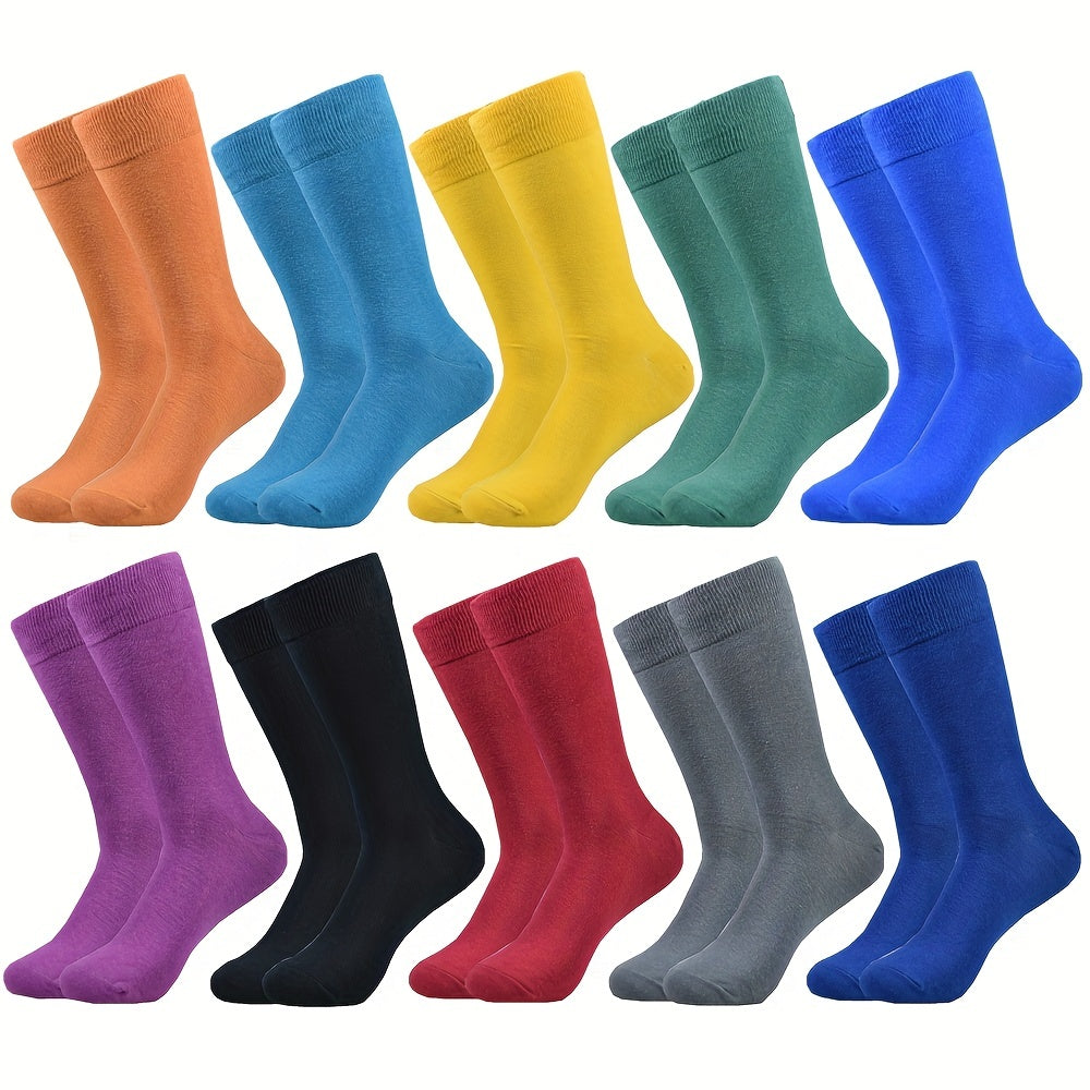 10 juft erkaklar uchun rangli moda kiyim paypoqlari, paxtadan tayyorlangan, terga chidamli, hidga qarshi, qulay va to'pi ustidan.