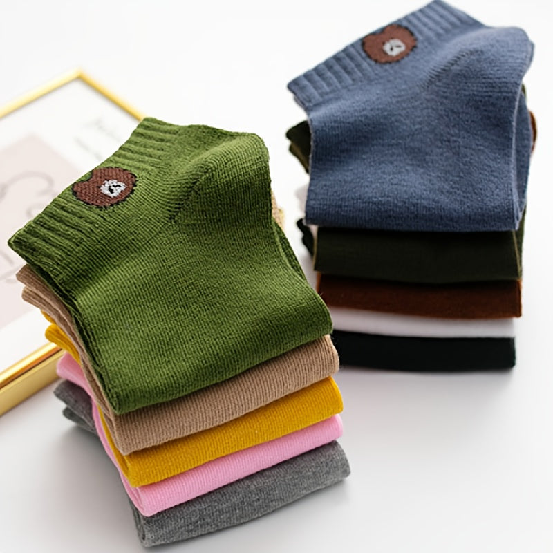 95% polyester va 5% elastan dan tayyorlangan 10 juft ayollar uchun multfilm ayiq ankle paypoqlari. Tikilgan, engil va nafas oladigan to'qima. Mashinada yuvish mumkin va zamonaviy.