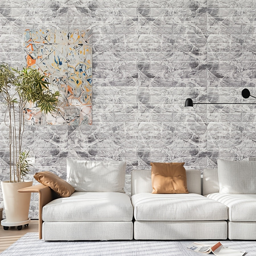 10m suv o'tkazmaydigan o'z-o'zini yopishtiradigan 3D g'ishtli devor qoplamasi stikerlari, kulrang jigarrang marmar naqshli devor bezak uchun