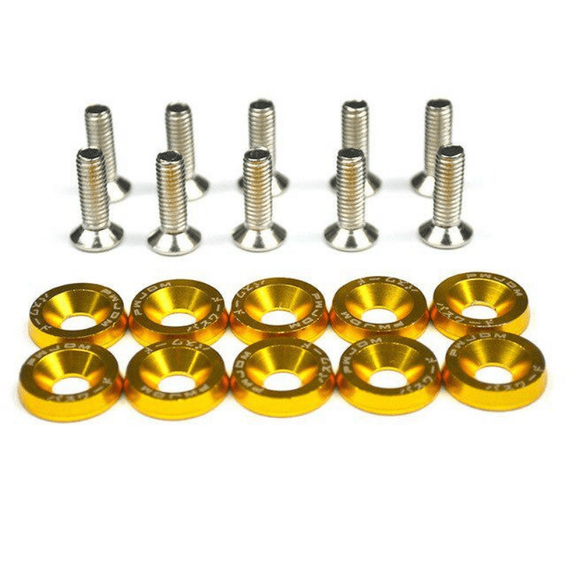 10 dona Avtomobil tezlatgich to'plami, oltinga fender yuvishlar, bumpers, dvigatel, M6 bolt, alyuminiy
