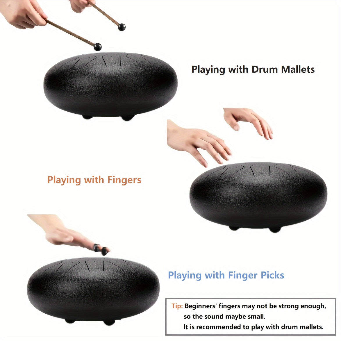 12 dyuymli po'lat tilimli davul sayohat qutisi va aksessuarlar bilan, meditatsiya va ochiq havoda foydalanish uchun