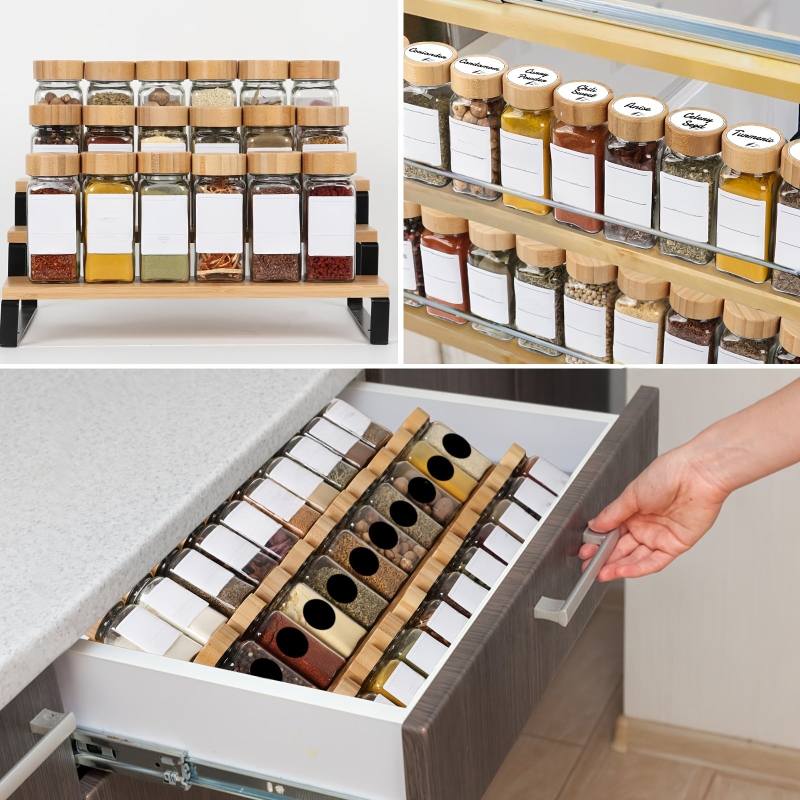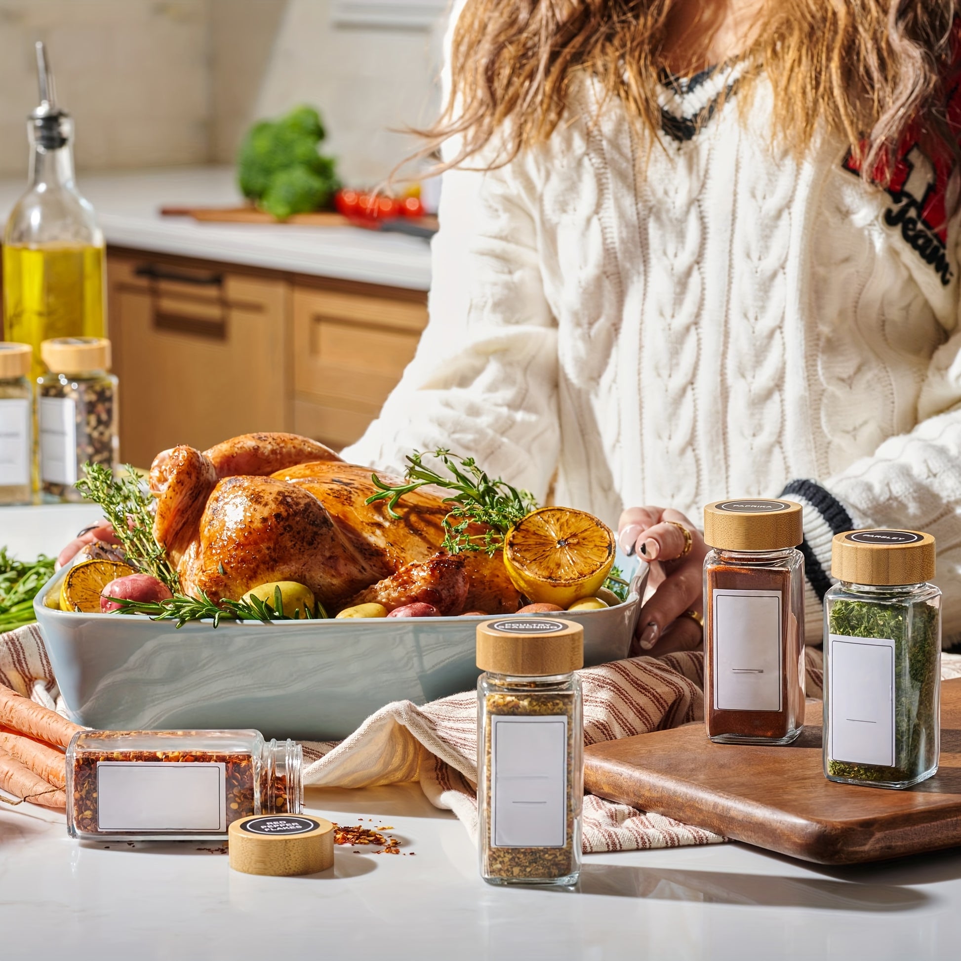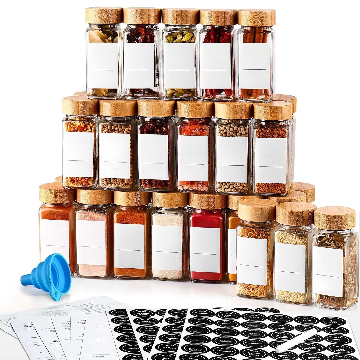 12-Donali shisha ziravorlar bankasi to'plami, bambuk qopqog'lar, yorliqlar va filtri bilan, havo o'tkazmaydigan oshxona saqlash uchun