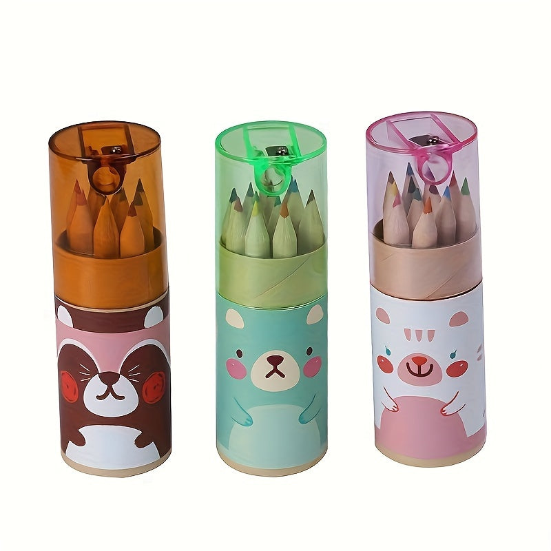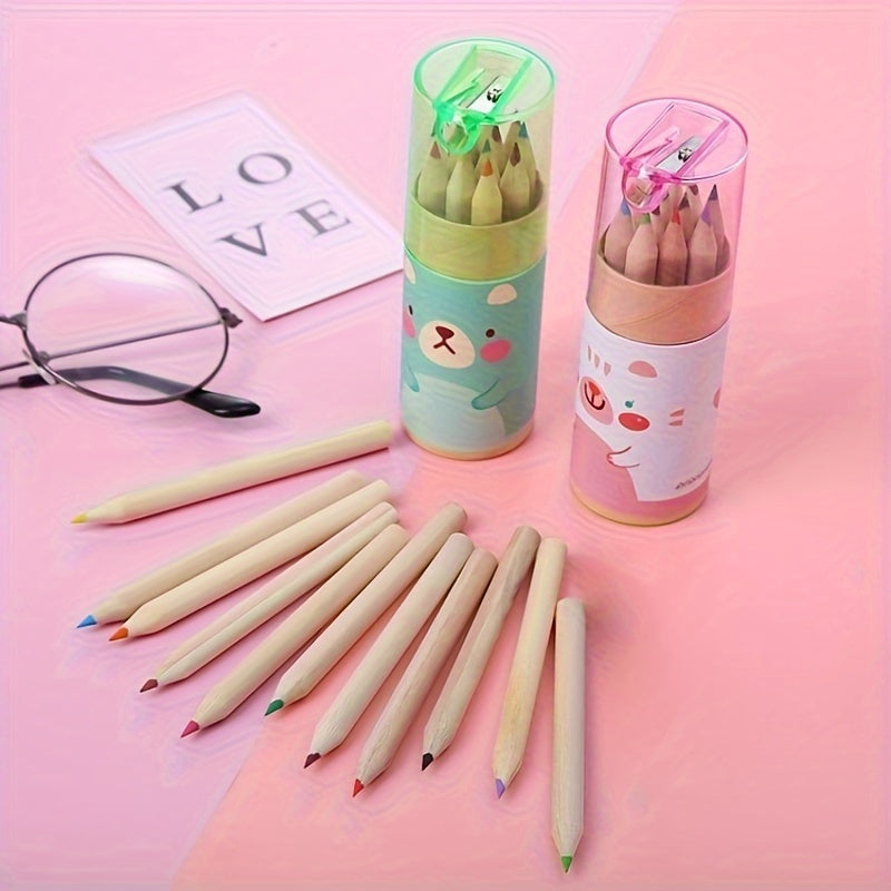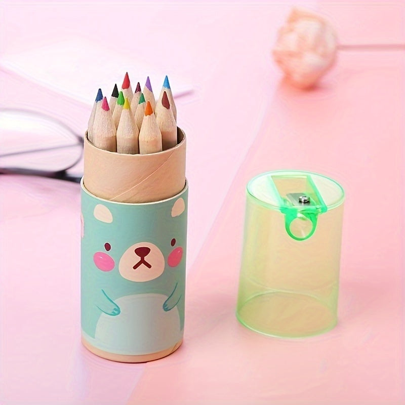 12-Donali rangli qalam to'plami va qalam so'rash uchun qalam pichoq bilan maktabga qaytish va Kawaii ofis uchun