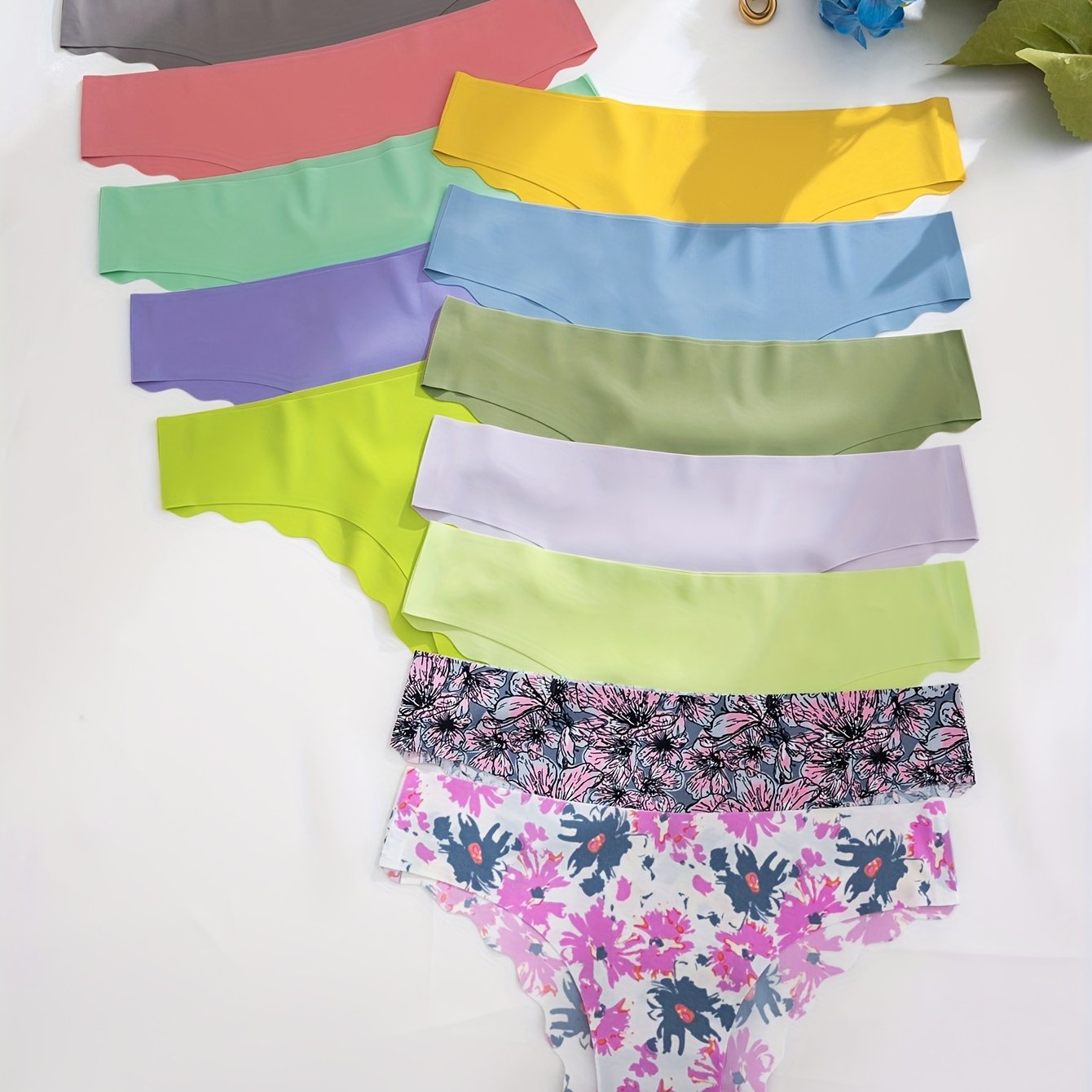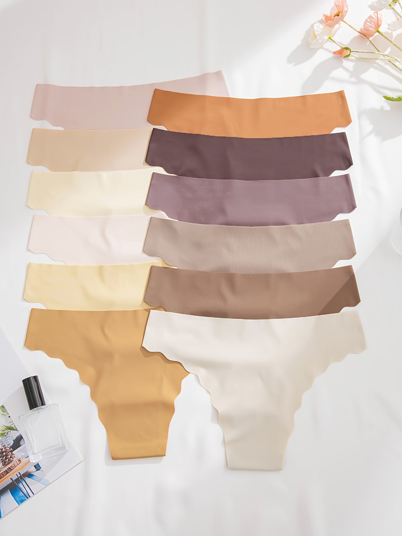 12 ta qirralari scallop shaklida bo'lgan past beldagi briflar, yumshoq va cho'ziluvchan, qulay kiyish uchun, ayollar uchun ichki kiyim va ichki kiyimlar