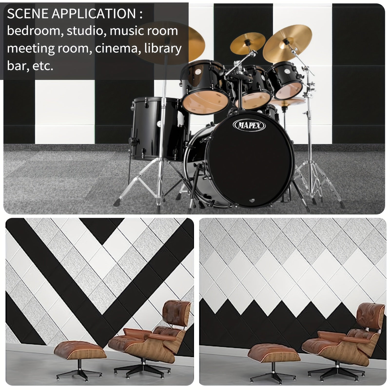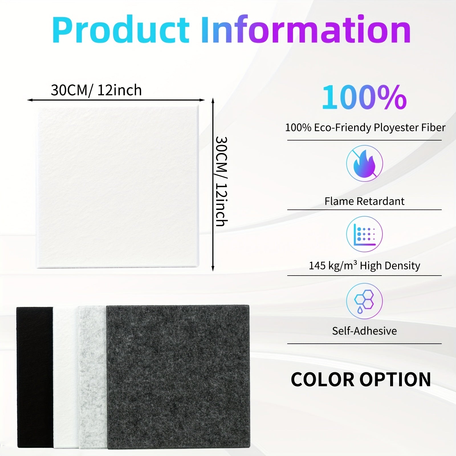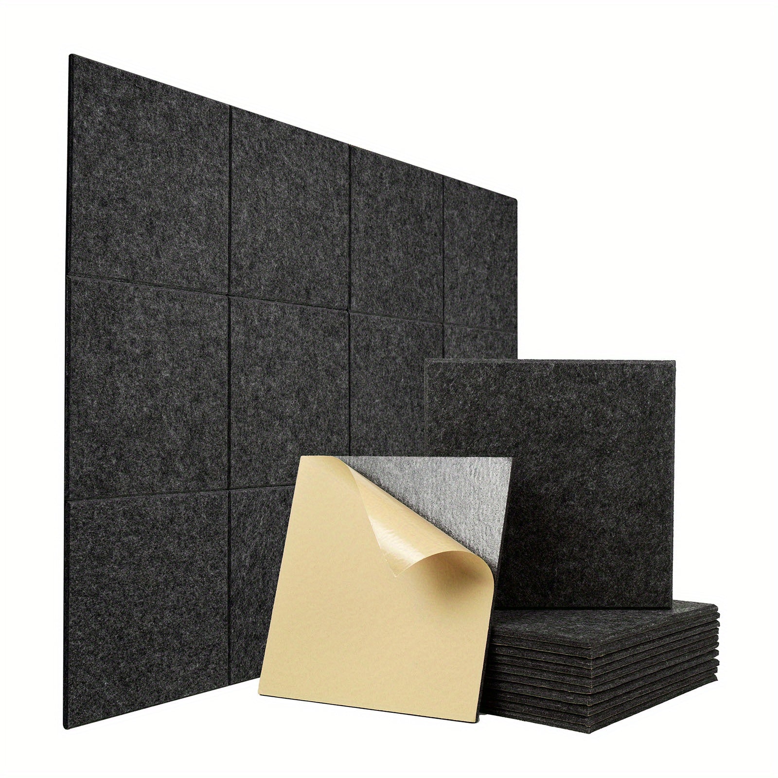 12x12 dyuymli o'z-o'zini yopishtiradigan akustik panellar oq, qora, kul rangda, uy, ofis, studiya uchun ovopuflaydigan to'siq