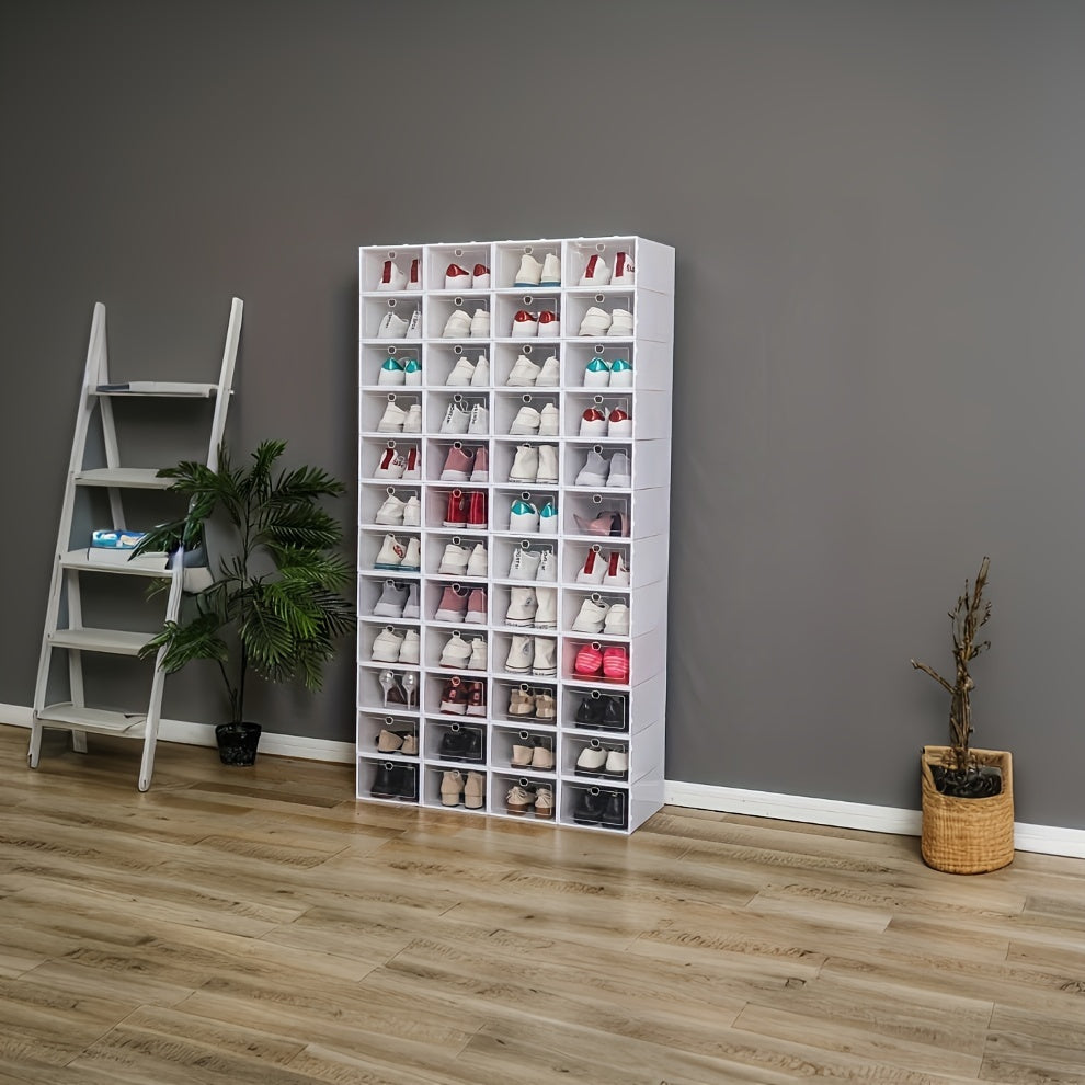 12 ta paketli stackable poyafzal saqlash qutilari, flip qopqog'lari bilan, suv o'tkazmaydigan, chang o'tkazmaydigan, shaffof tashkilotchilar