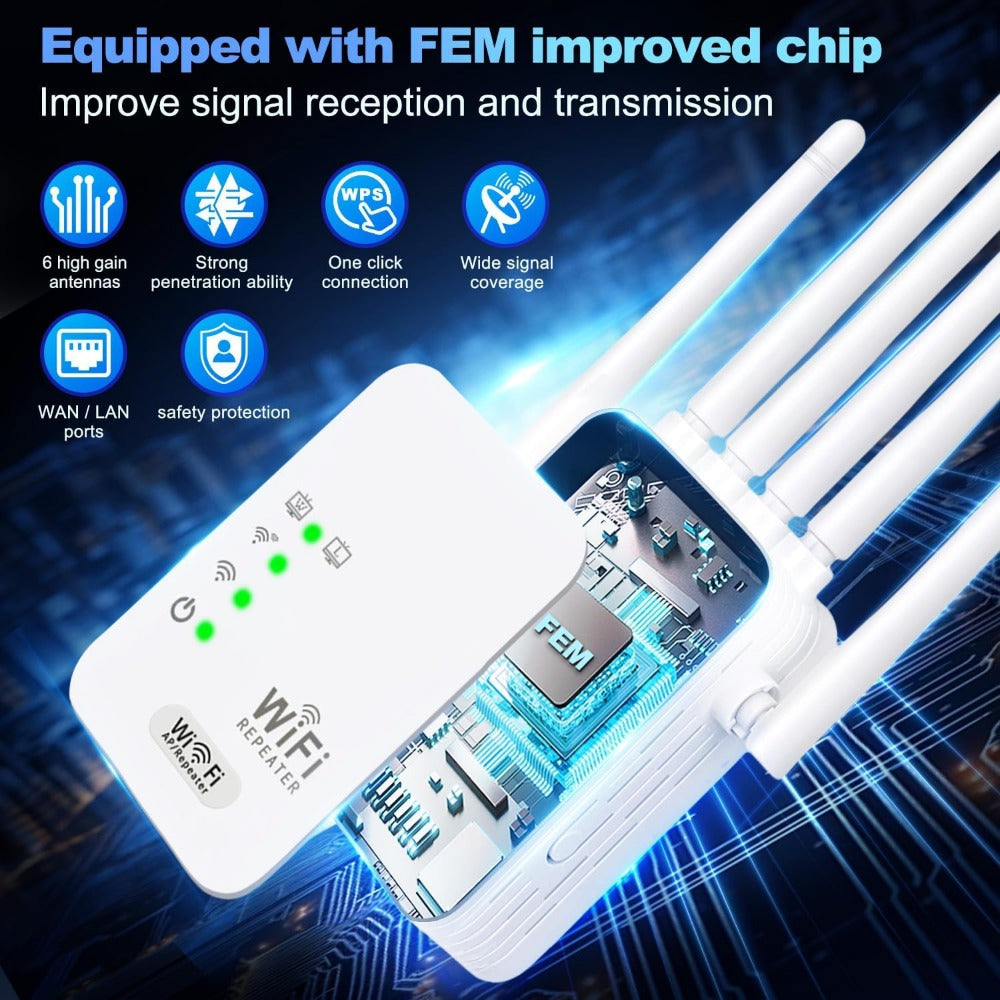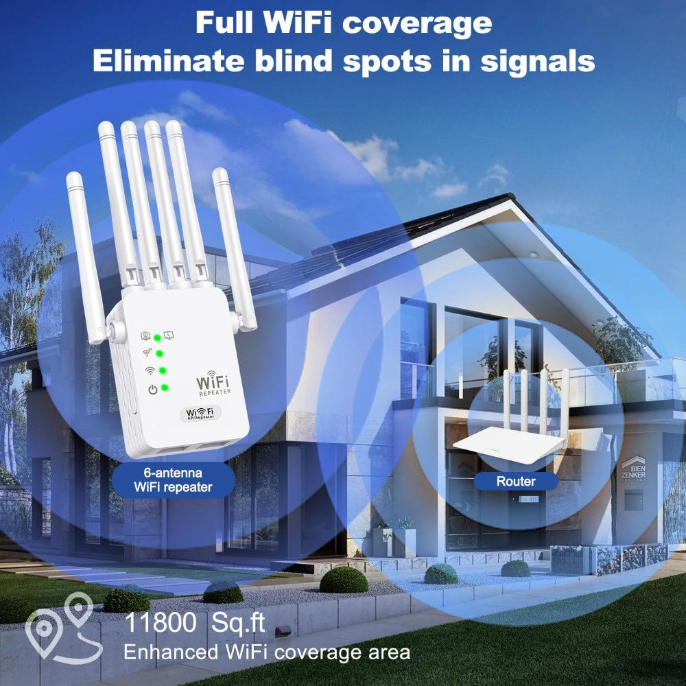 Uy va ofis uchun 1200m WiFi kengaytirgichi, 45+ qurilmani qo'llab-quvvatlaydi, 360° qamrov, Ethernet port bilan