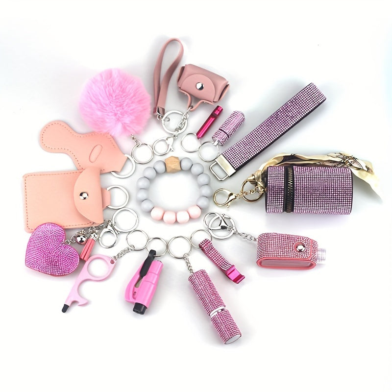 15 dona ayollar to'plami rhinestone bilan bezatilgan - qo'l sumkasi, shisha, karta ushlagich va saqlash sumkasi bilan.