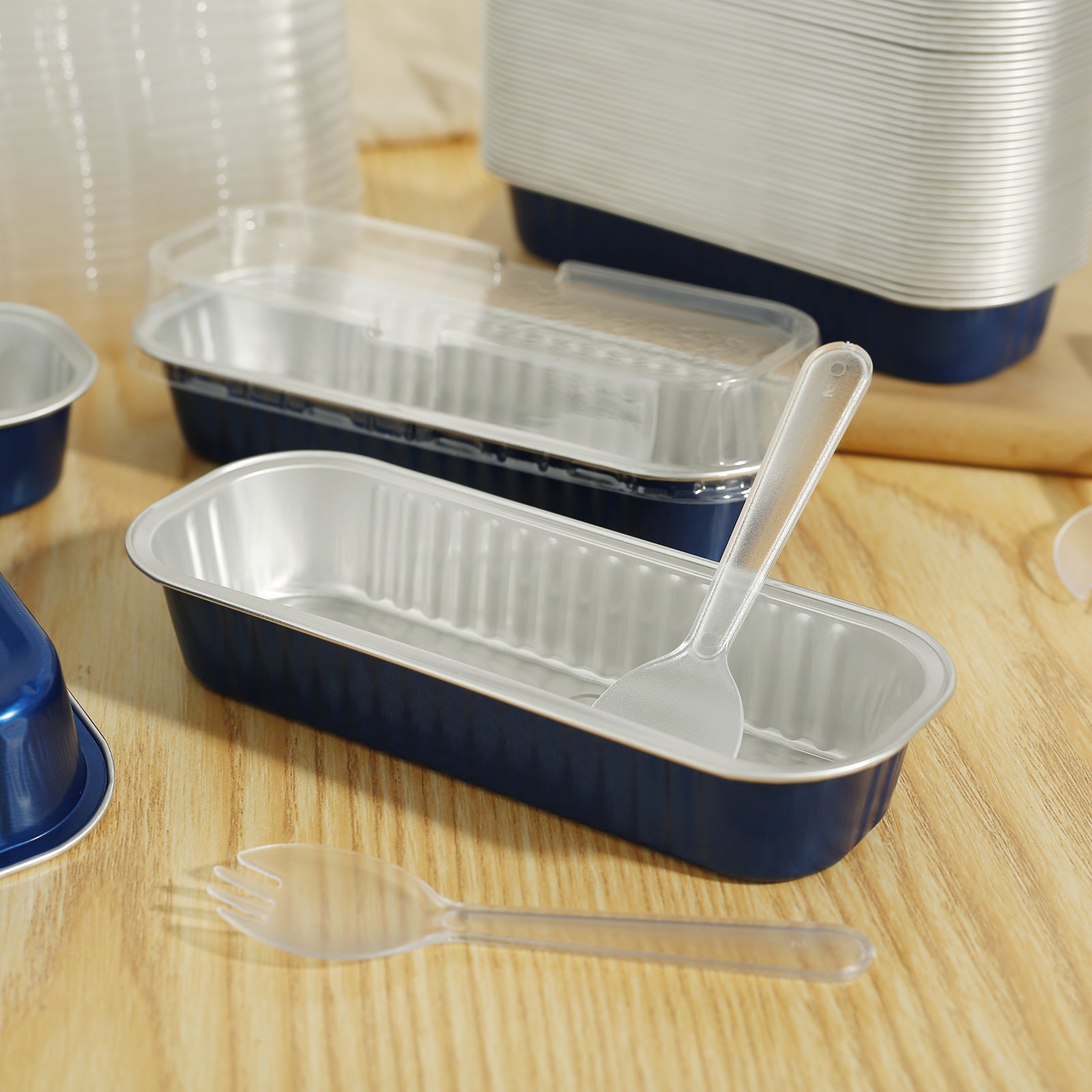 150 ta mini tort pishirish idishlari qopqoq va qoshiq bilan: bu yopishmaydigan folga pishirish idishlari har biri 200ml sig‘imga ega va qayta ishlatilishi mumkin. Uyda non yoki keks tayyorlash uchun mukammal.