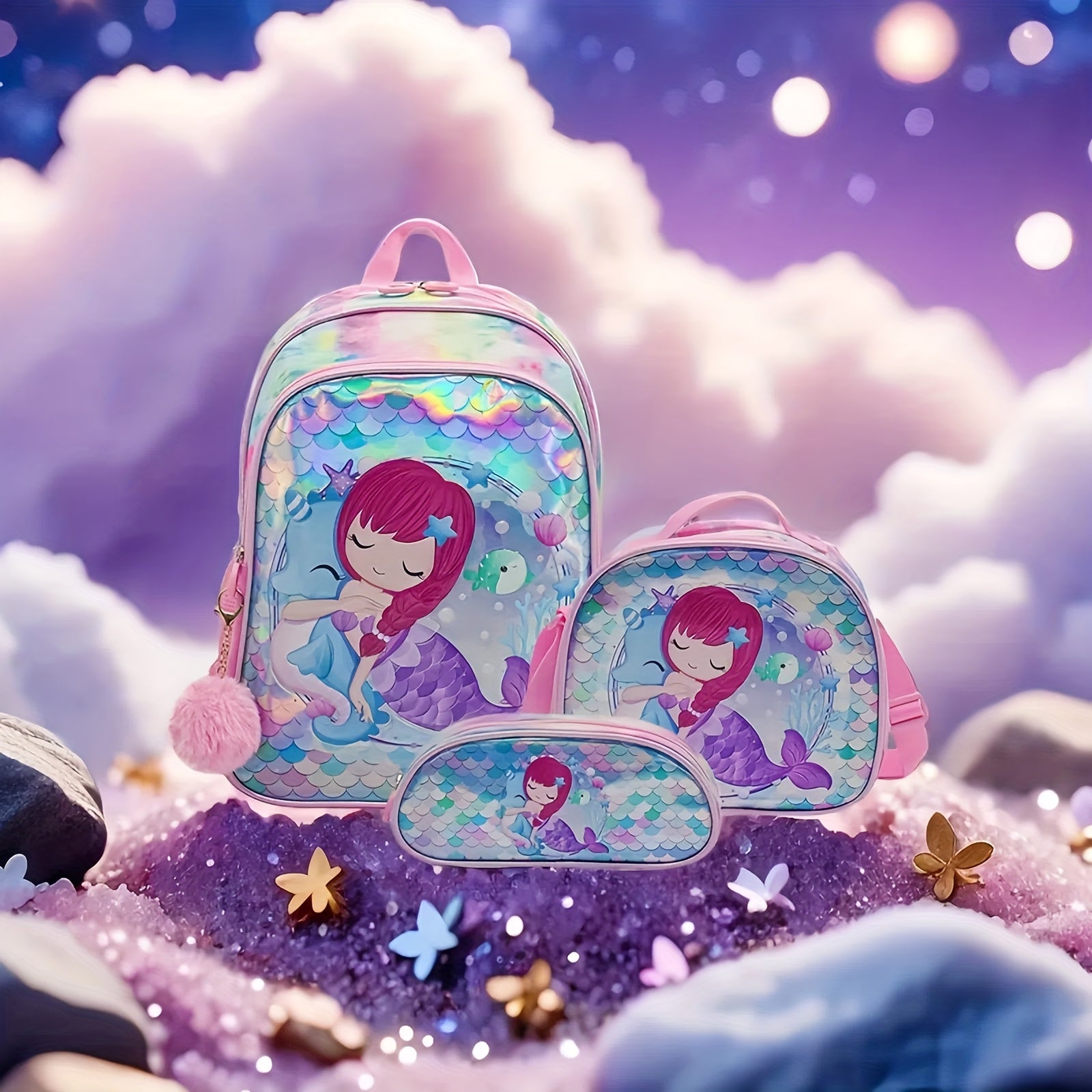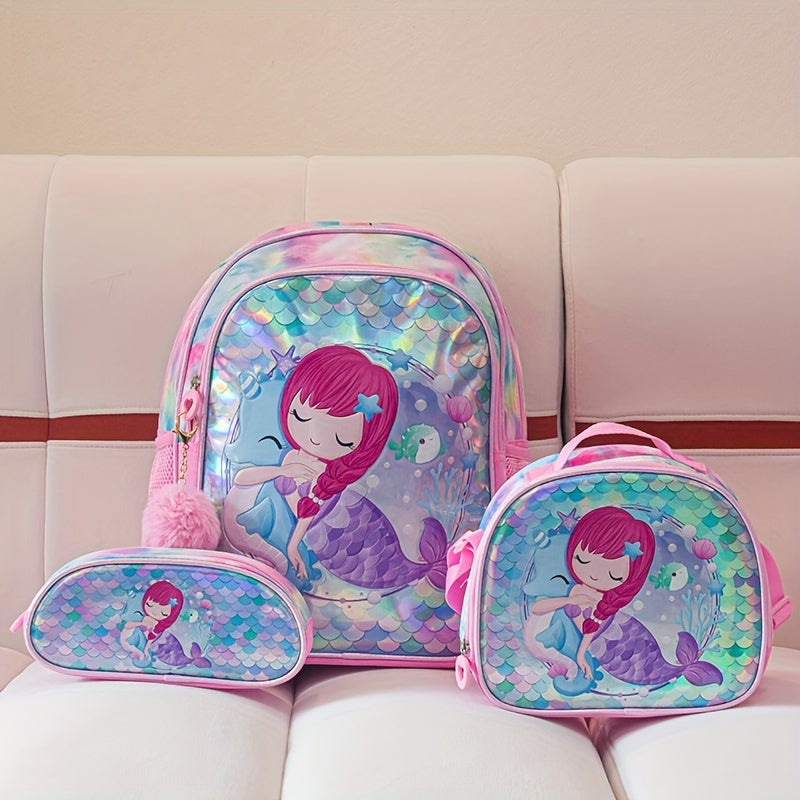 16 dyuymli qizlar uchun uch qismli o'quv sumkasi to'plami, ikki yelkalik o'quv sumkasi, ovqat sumkasi va qalam sumkasini o'z ichiga oladi. Sayohat, maktab yoki lager uchun zamonaviy va ko'p funksiyali. Barcha o'lchamlar uchun mos, pushti rangda.