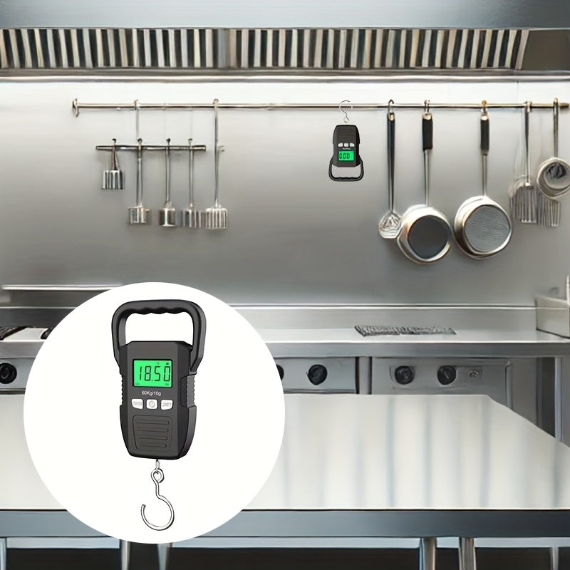 1 dona Raqamli osma tarozi Katta yoritilgan LCD ekran bilan - 132lb/60kg sig‘im, Baliq ovlash, yuk va pochta ishlatish uchun ideal, Batareya bilan ishlaydi (Batareyalar kiritilmagan)