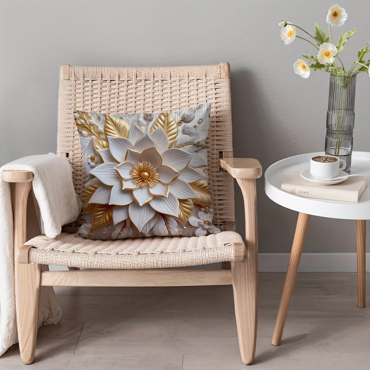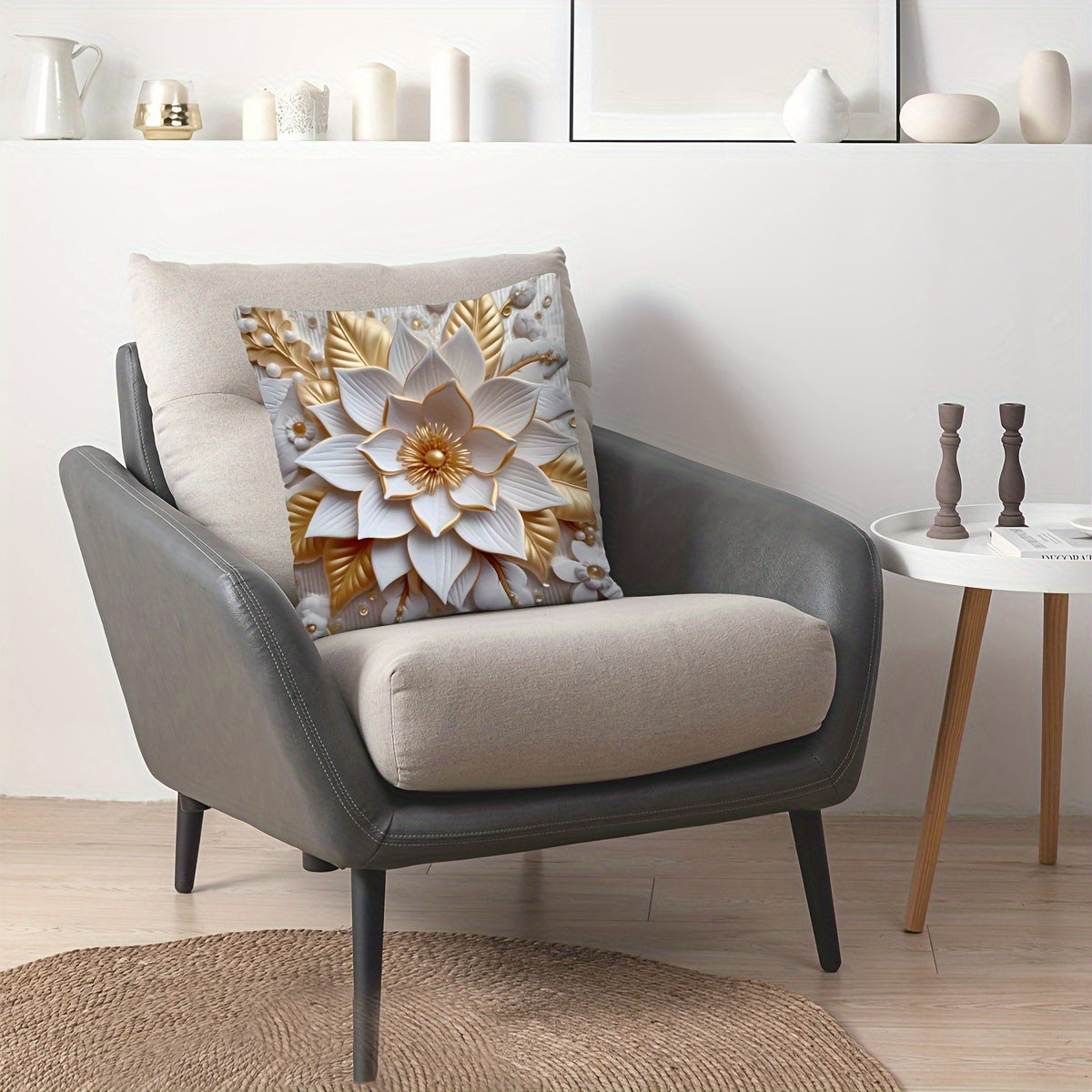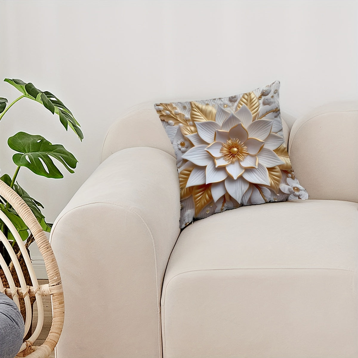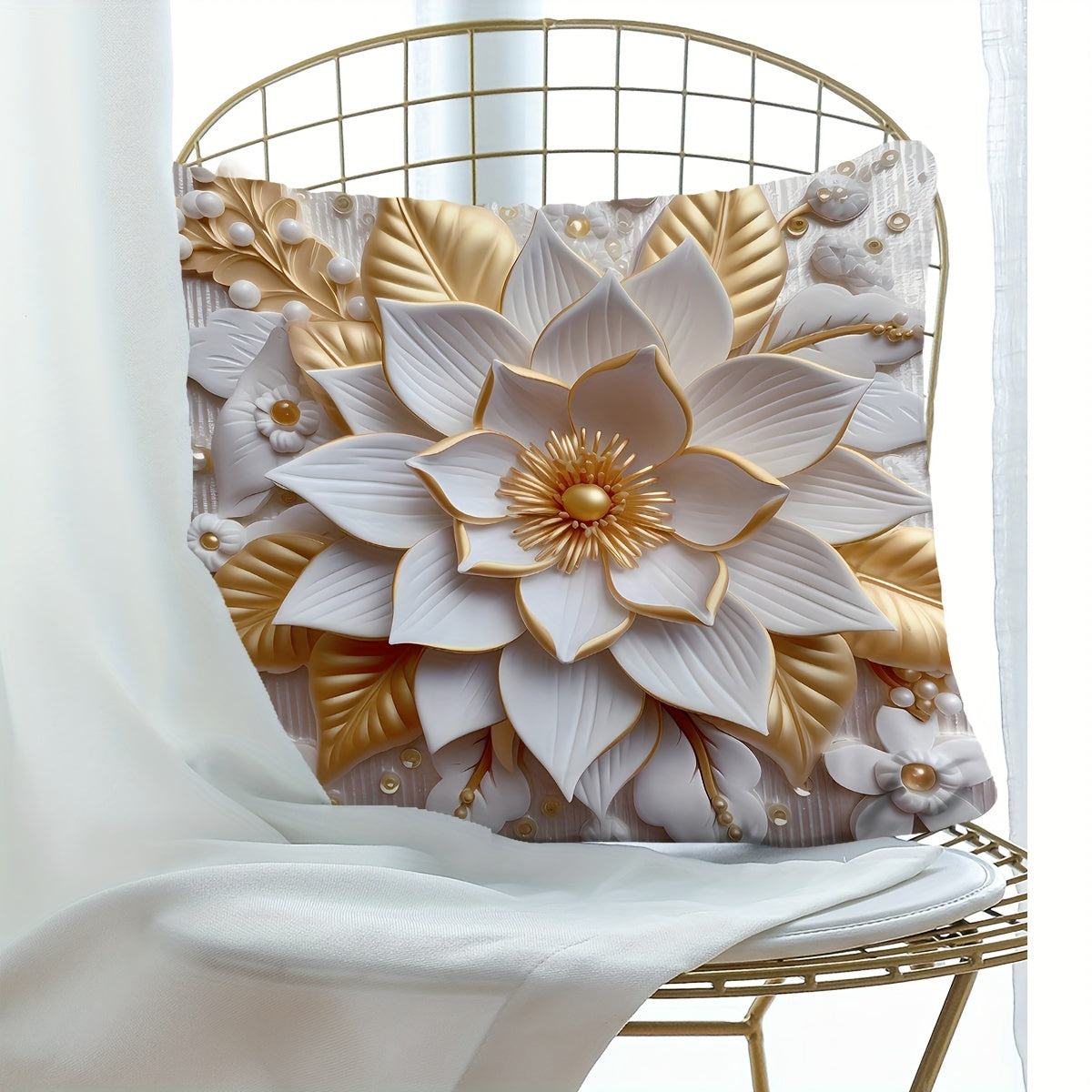 1 dona raqamli bosma yostiq qopqog'i 3D gullar naqshi bilan, bitta tomonli bosma, 44.96 sm x 44.96 sm. Divan, yashash xonasi, yotoqxona bezatish uchun mos. Yostiq yadrosi kiritilmagan.