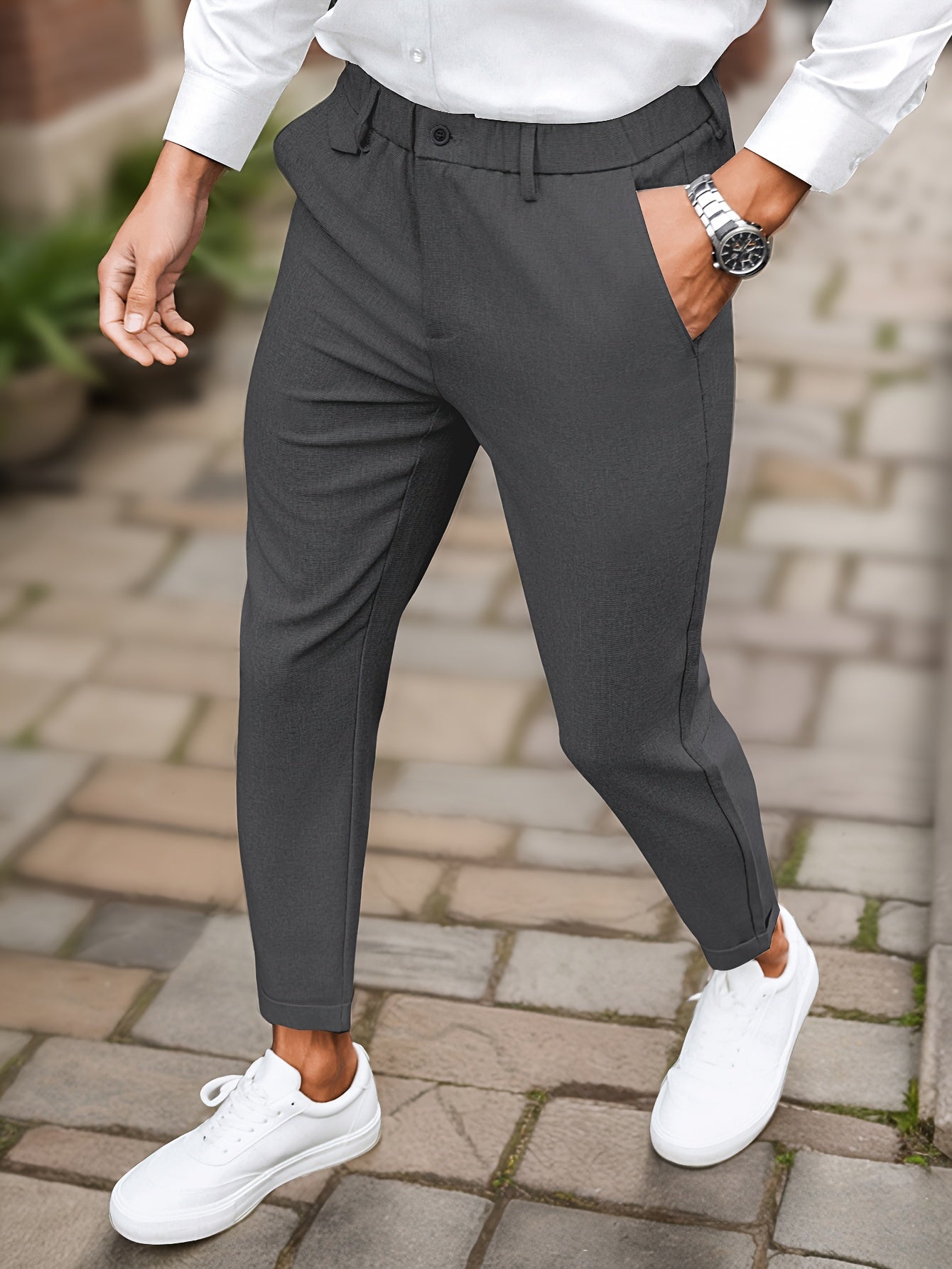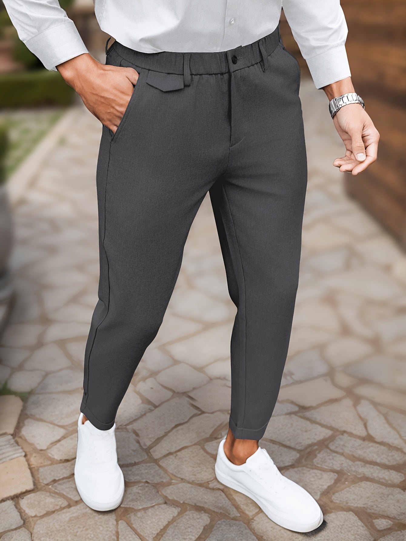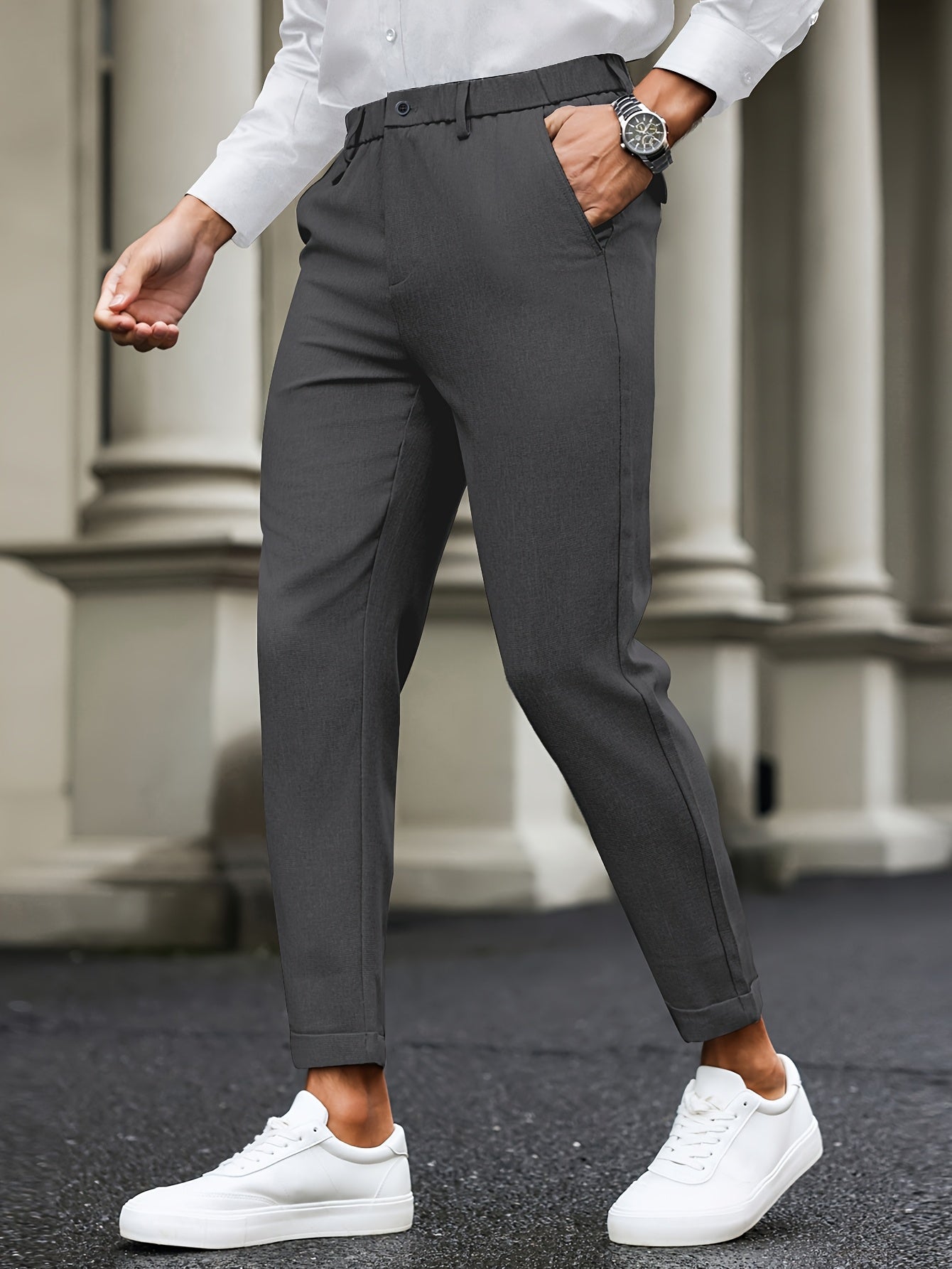 1 dona Erkaklar uchun Elastik Bel Casual Shimlar, barcha mavsumlar uchun mos, biznes modasi uchun mukammal, to'g'ri oyoq.