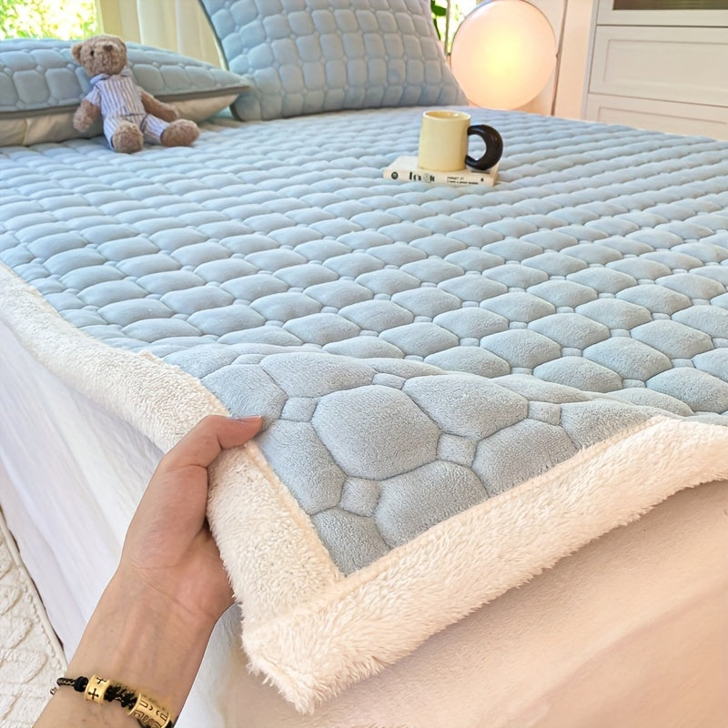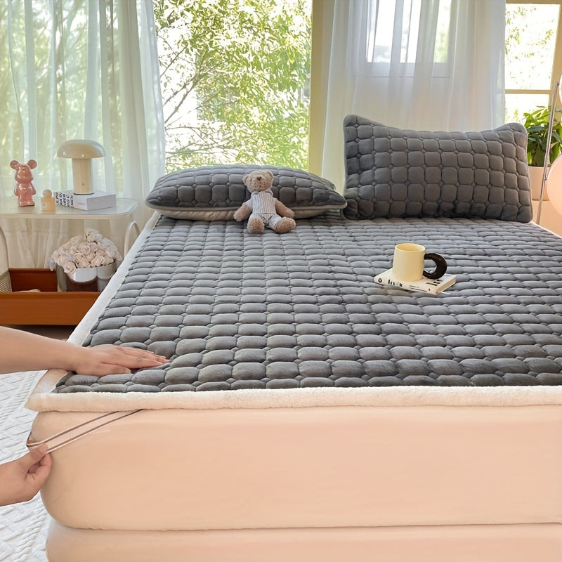 1 dona sutli velur matras, 4 burchakda elastik tasmalari bilan, yumshoq va mashinada yuvish mumkin. Yotoqxona, divan yoki mehmon xona uchun mos.