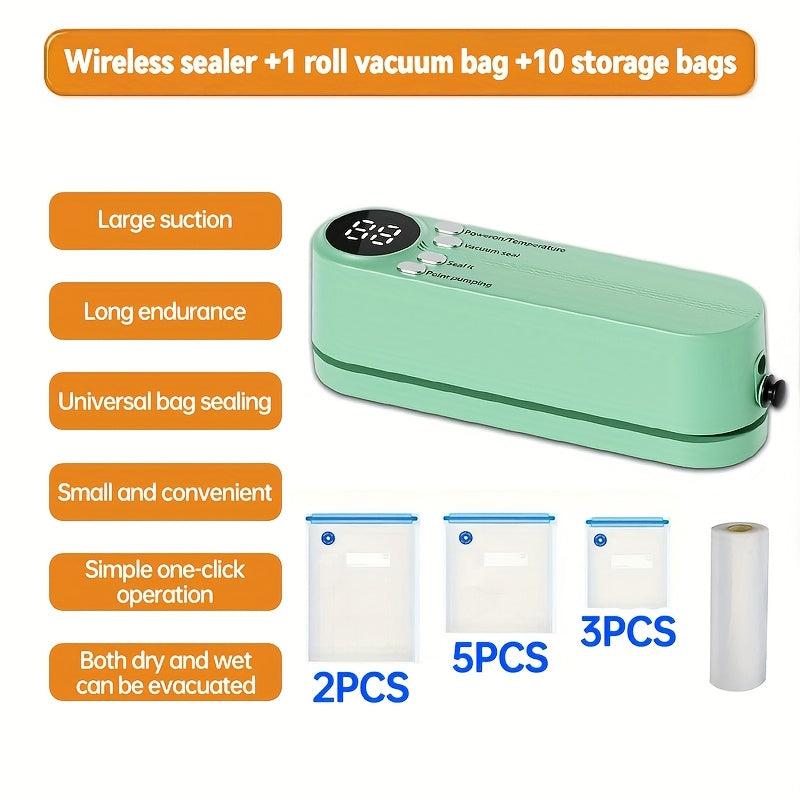 Ko‘p funksiyali avtomatik oziq-ovqat yopishtiruvchi, portativ simsiz vakuum yopish uchun snack sumkasi yopishtiruvchi