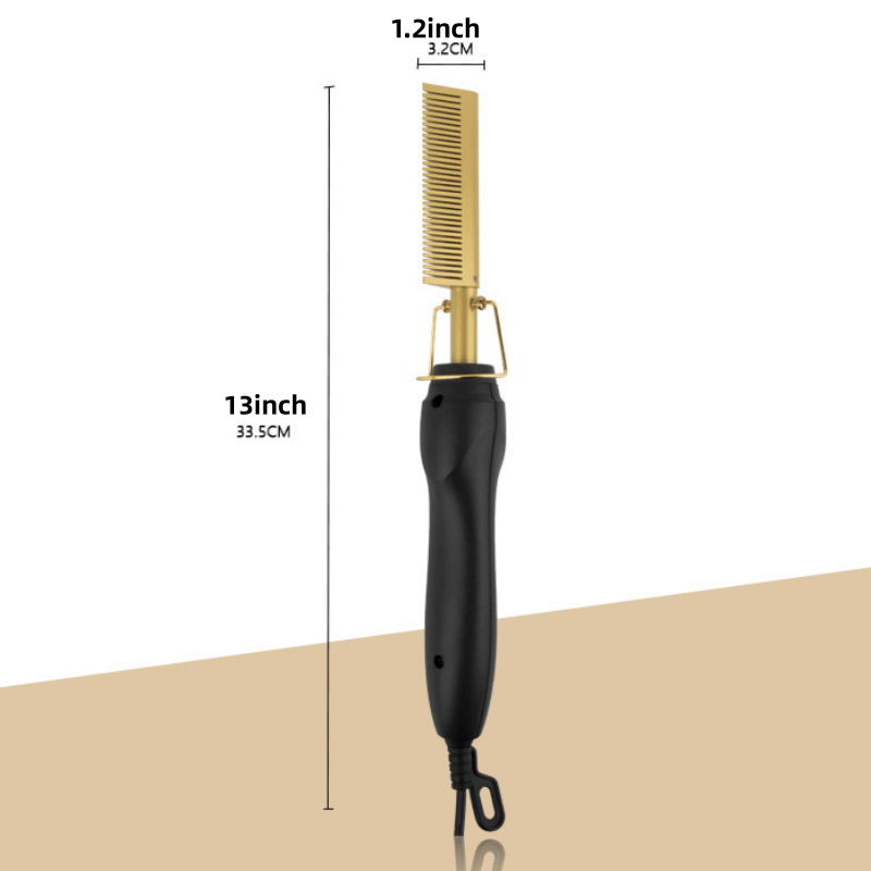 1 dona Ko‘p maqsadli Elektrik issiq tarak, to‘g‘ri va qirqilgan sochlar uchun, doimiy harorat nazorati bilan, quruq va ho‘l uslub uchun, 220-240°C, qora va oltin dizayn, 1.5-2.5m sim.
